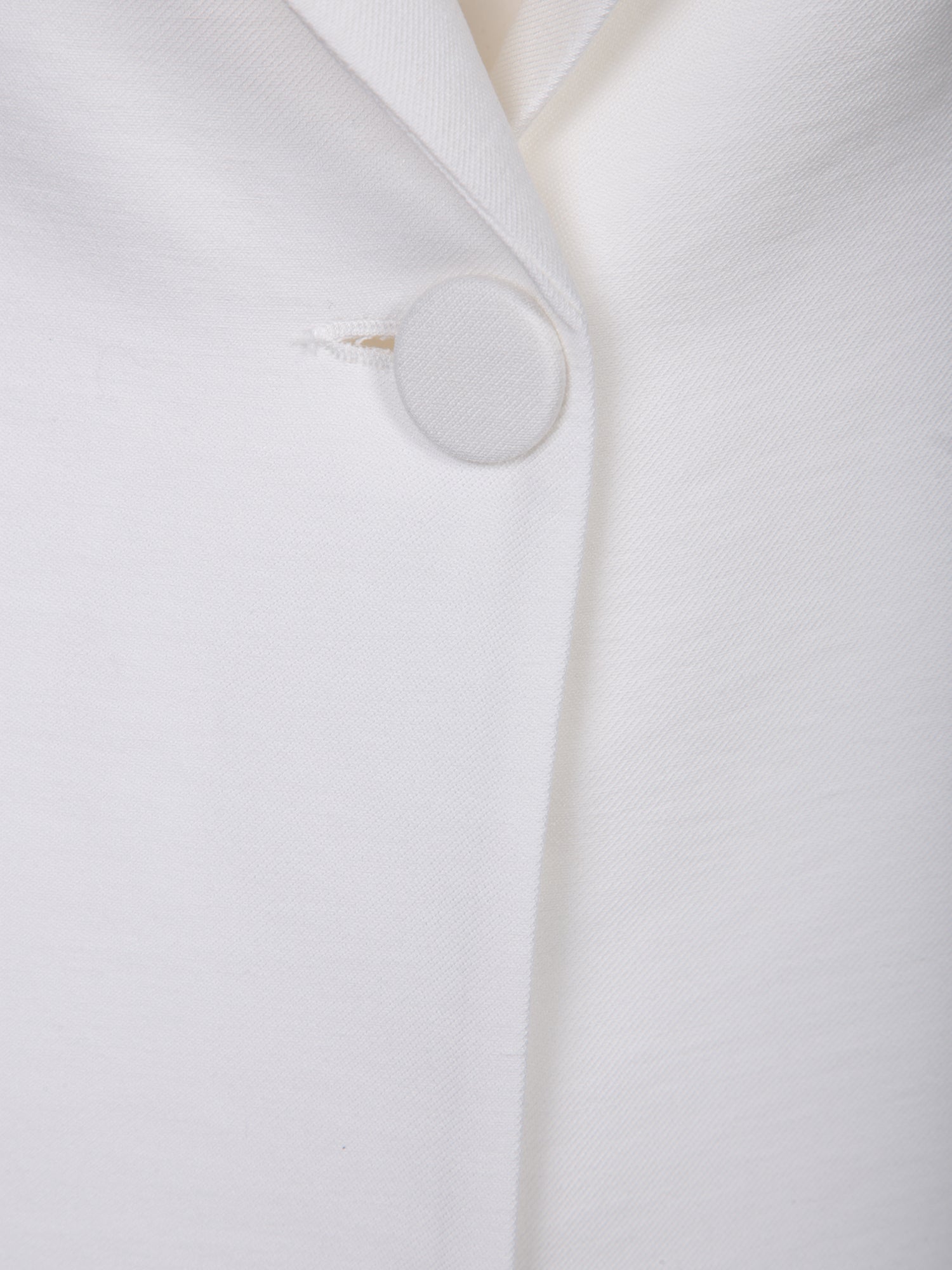 This elegant white viscose twill jacket features a tailored design with a single-breasted closure for a classic and clean style, perfect for formal occasions and business settings.
