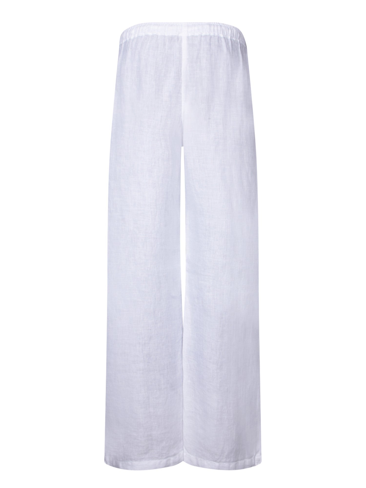 Wide-leg trousers in pure linen featuring an elasticated waistband and adjustable drawstring.