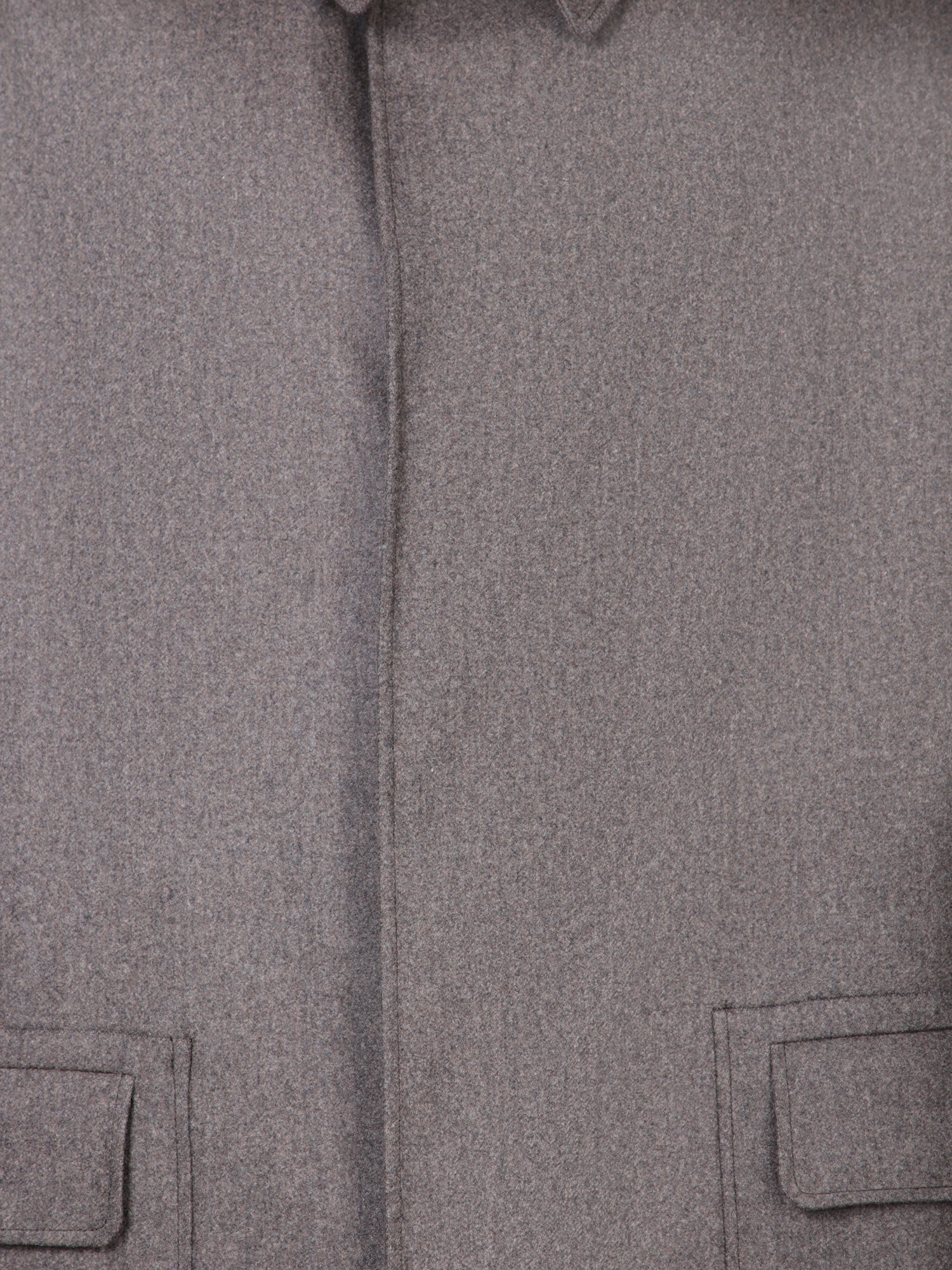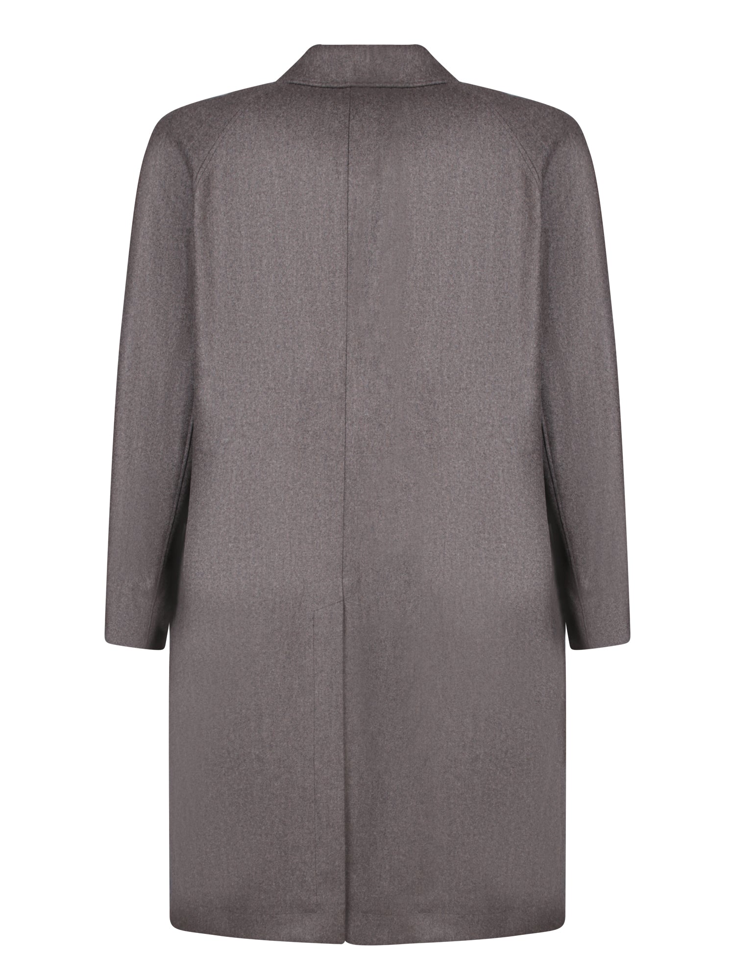 Clean-lined coat in a wool and cashmere blend. Gray green color with button closure and classic collar. Applied side pockets.