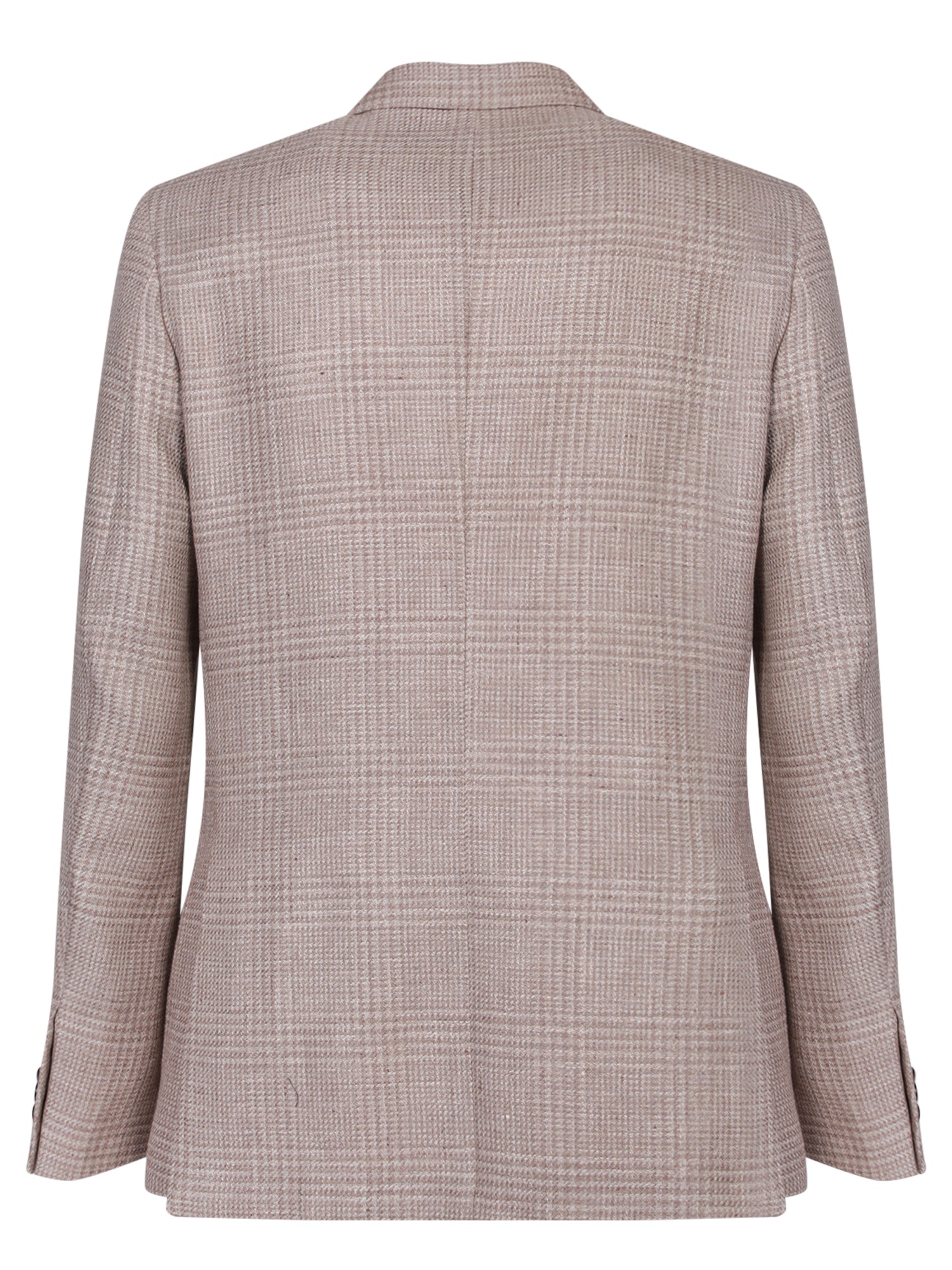 Tailored houndstooth wool jacket. Single breasted with one-button closure. Welt front pockets and chest pocket. Full inner lining.