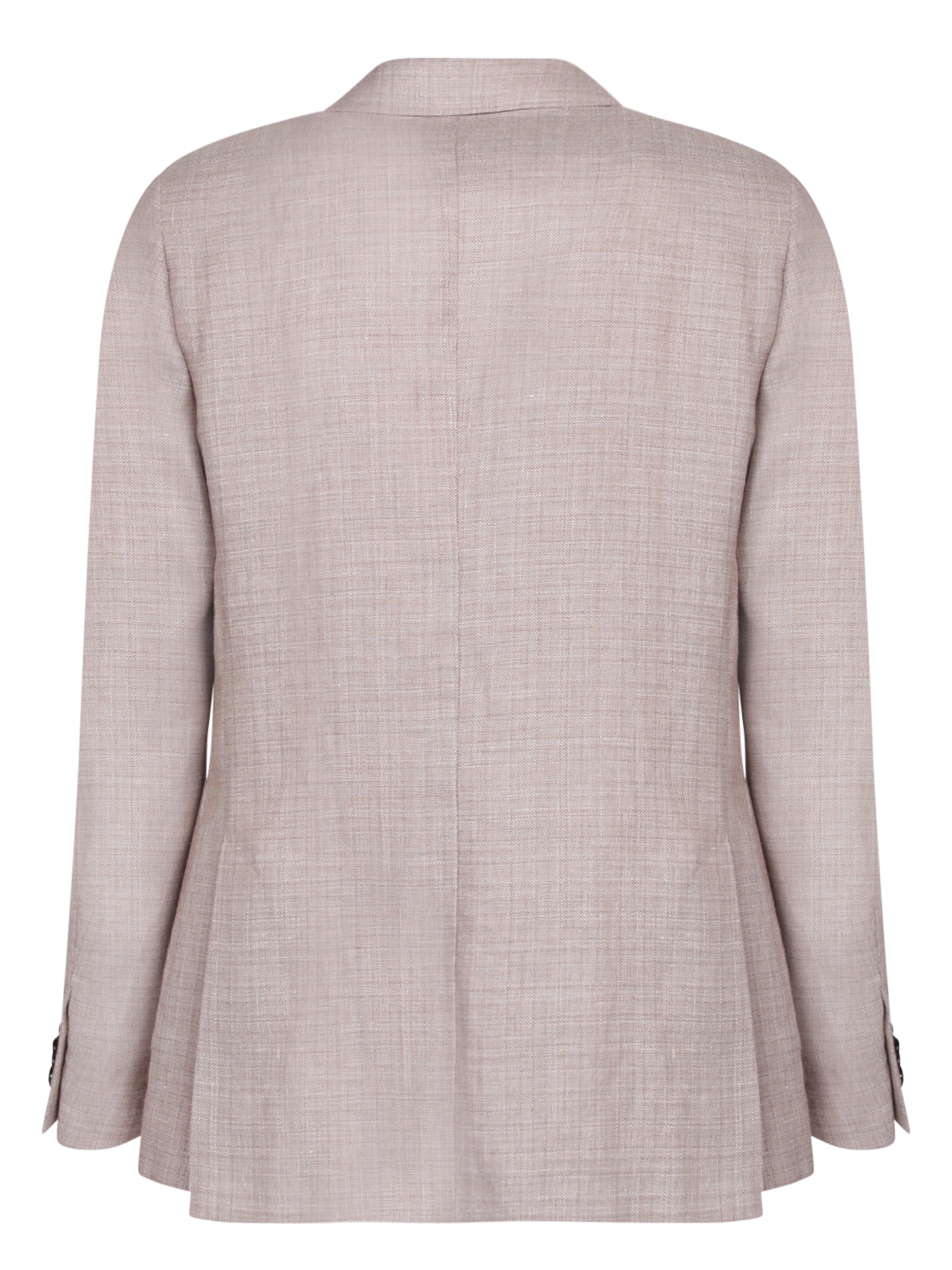 Unlined, two-button closure, welt pockets and chest pocket, side vents, visible stitch detailing.