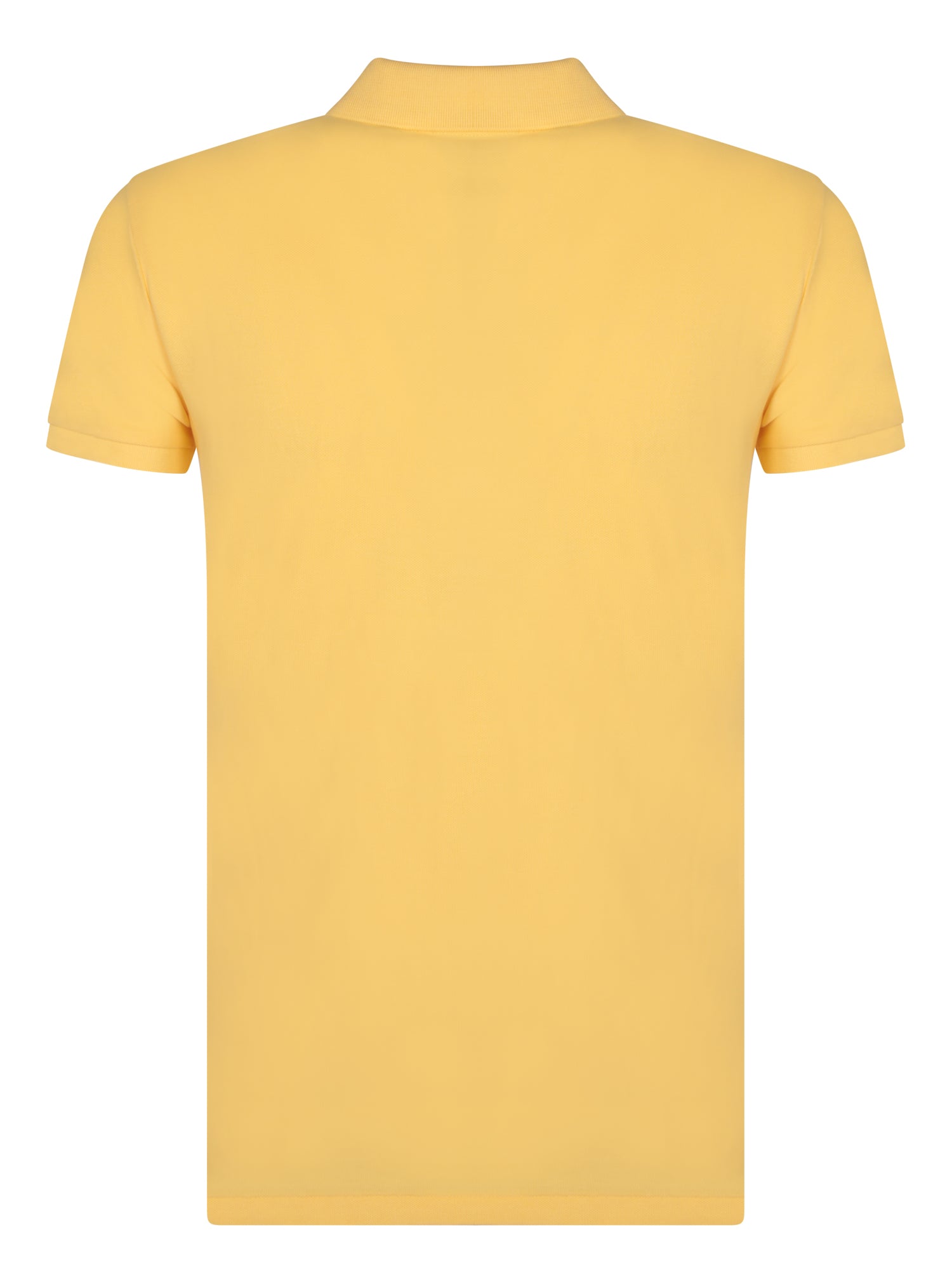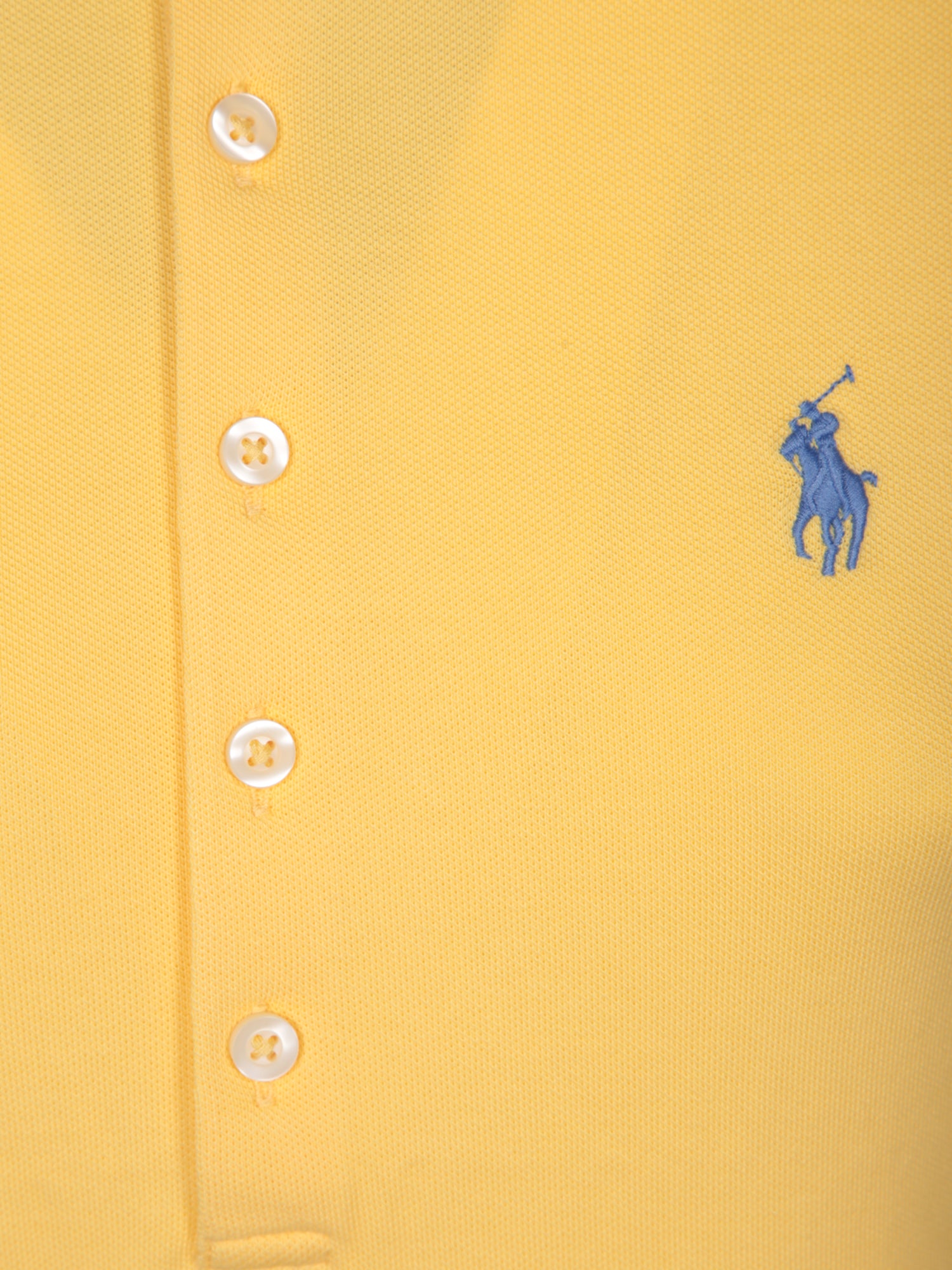 Short sleeve. Embroidered logo on the chest. Classic collar with button closure.