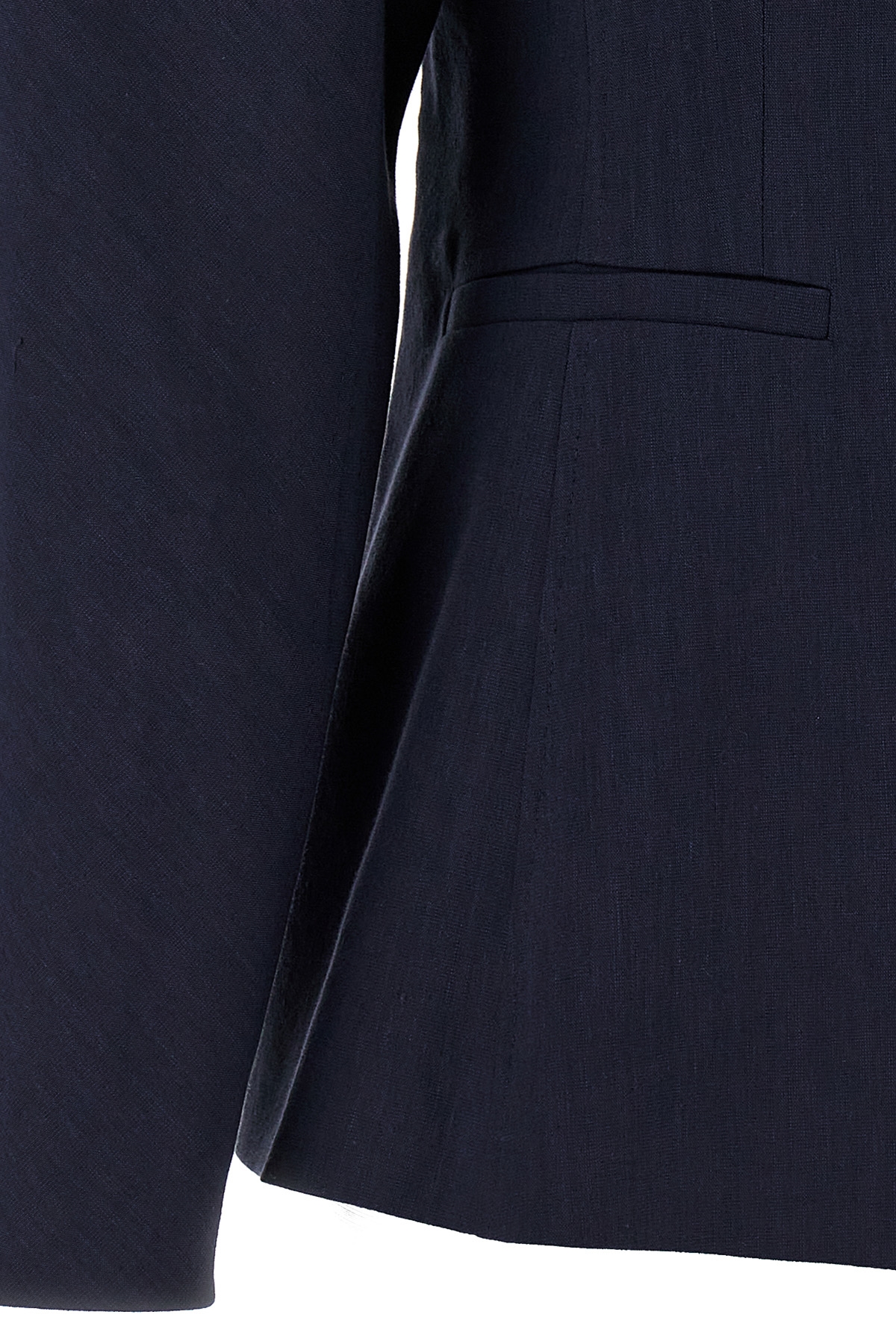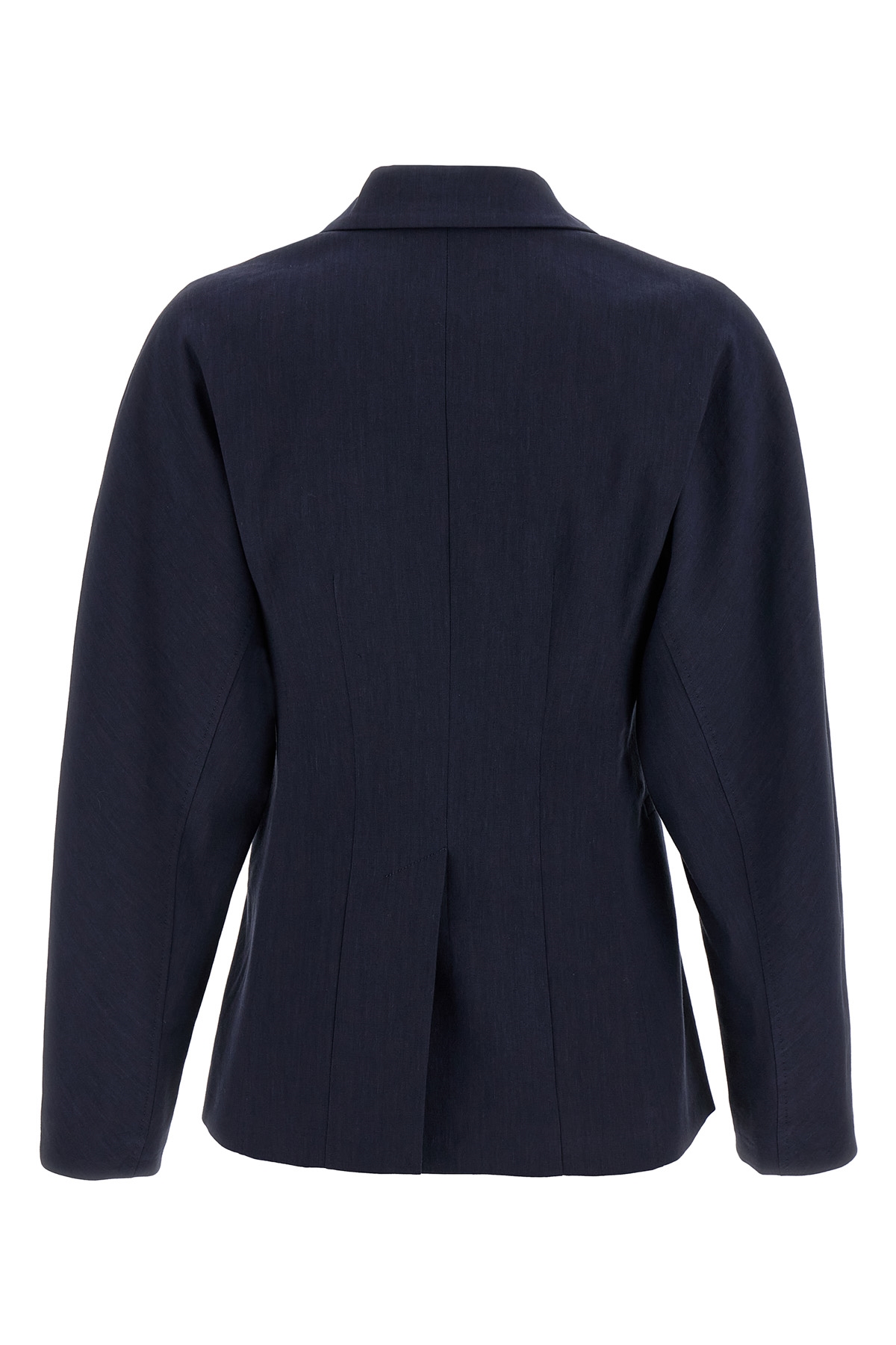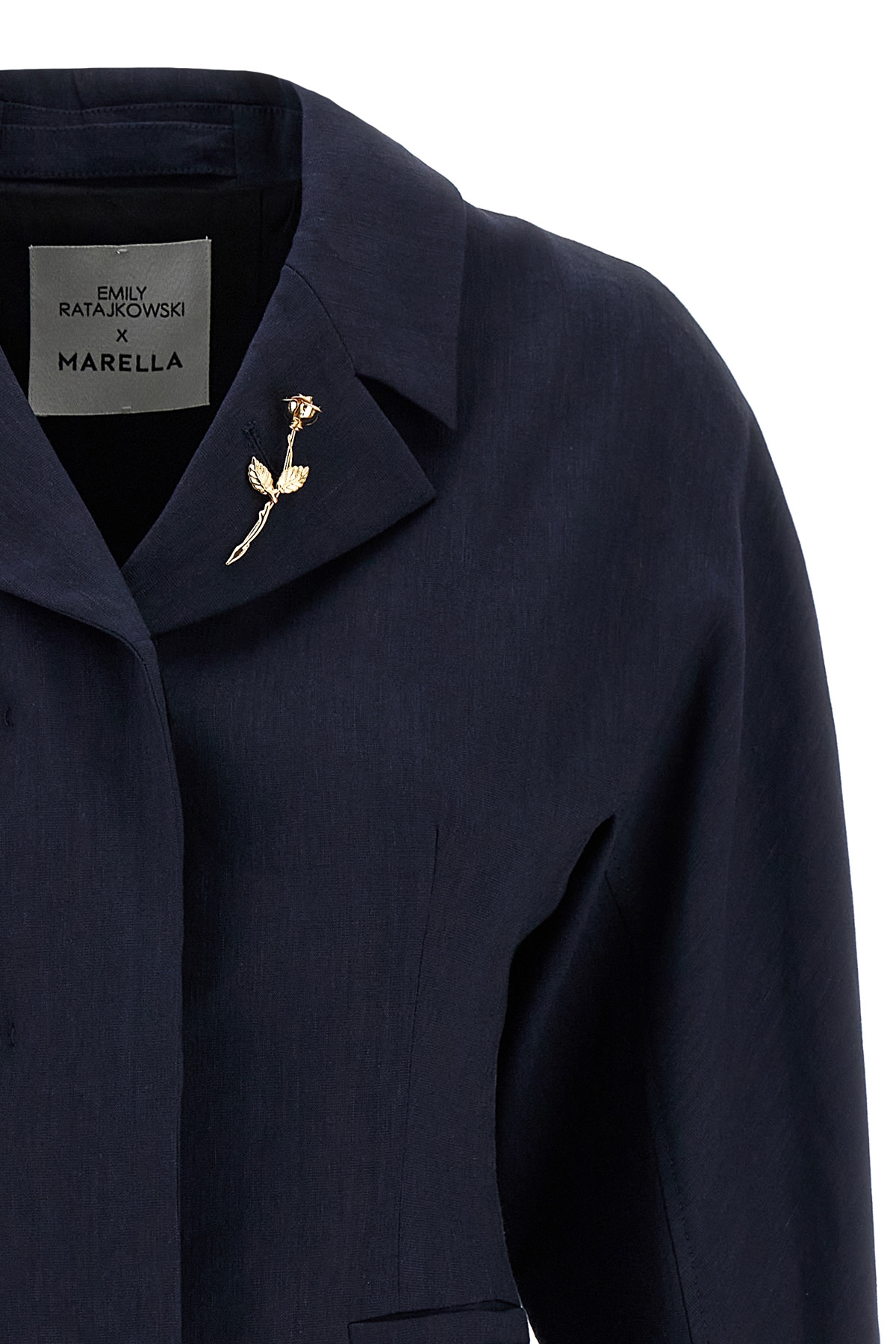 Emily Ratajkowski x The ROUNDED Blazer Marella capsule in linen canvas and stretch viscose, single-breasted model with front button closure, lining, pockets, kimono construction with concealed buttoning, long sleeves, back split, removable brooch.
