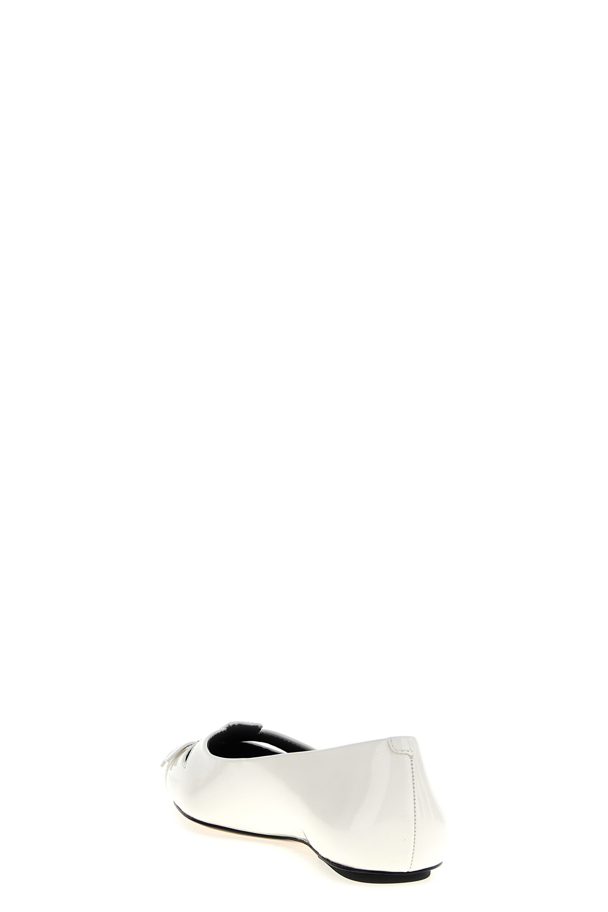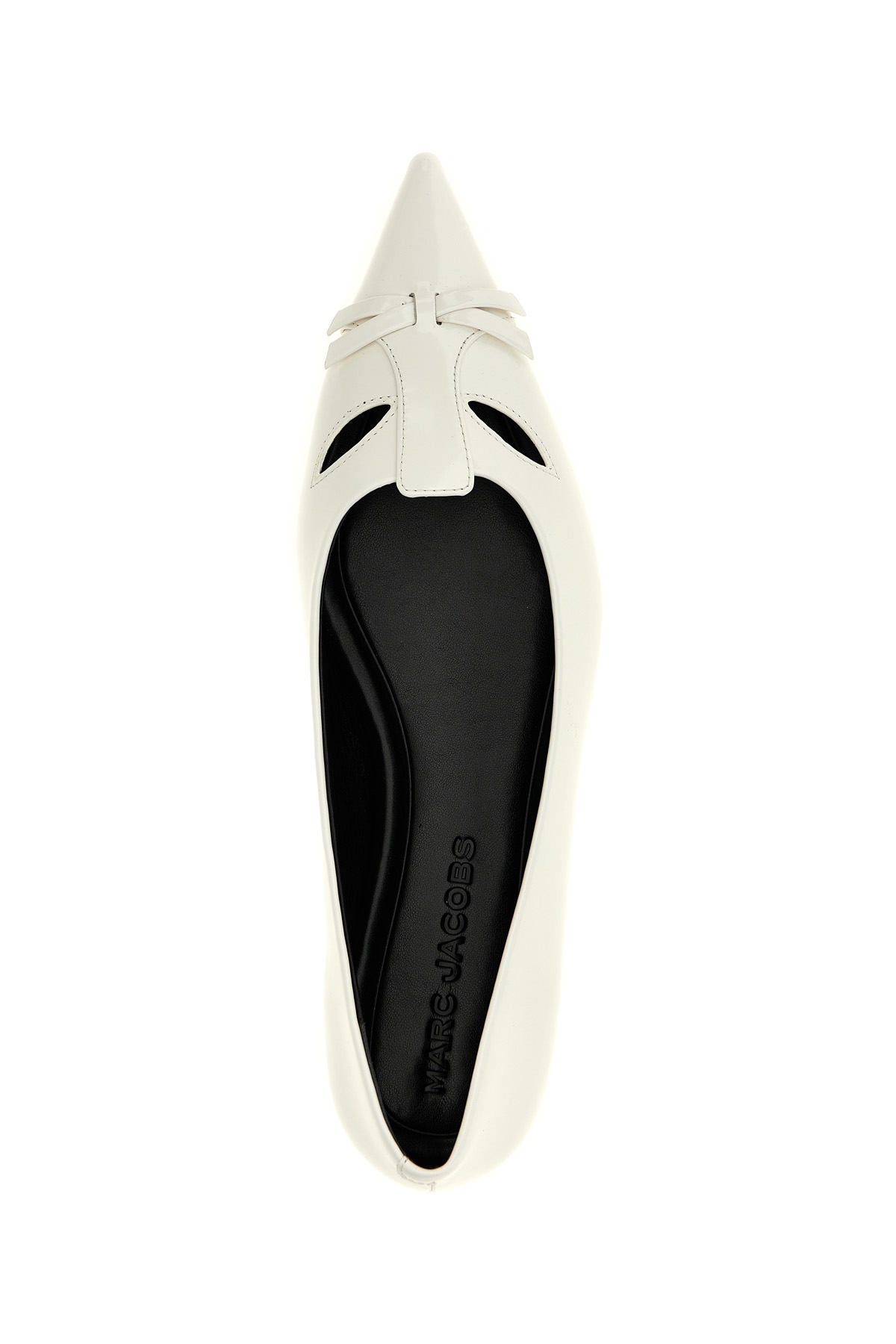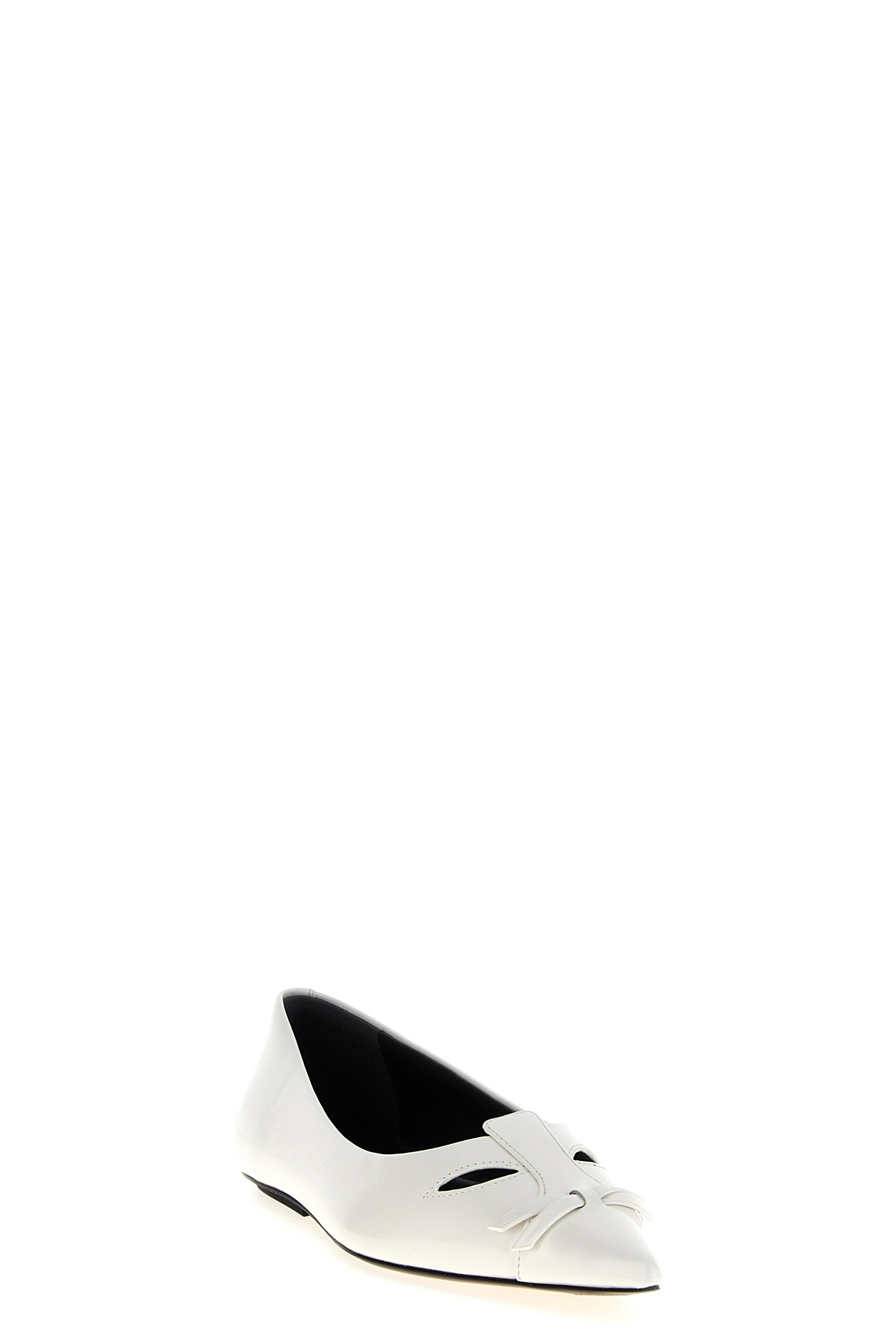 'The Kat' patent leather ballet flats with cut-out detail with front bow, pointed toe, padded insole, leather sole.