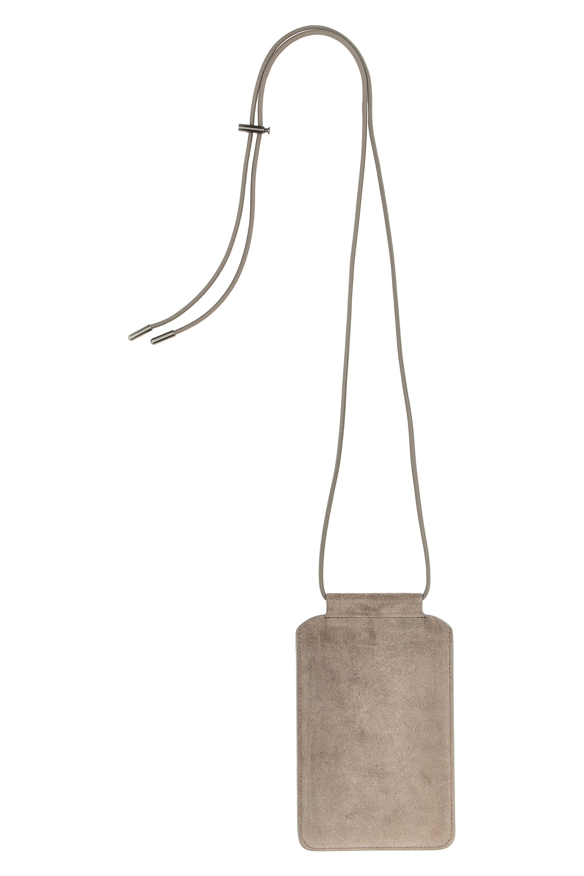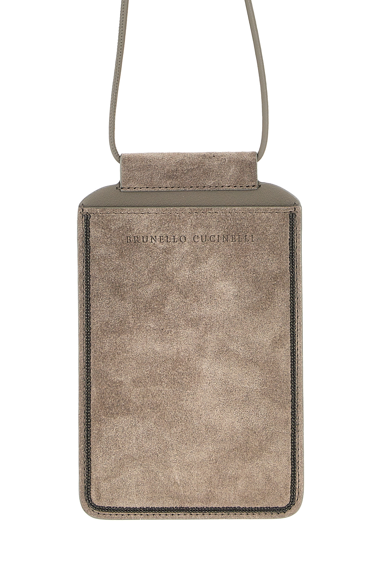 Suede and leather smartphone holder with Monile 'Shiny Trim' detail on the front.