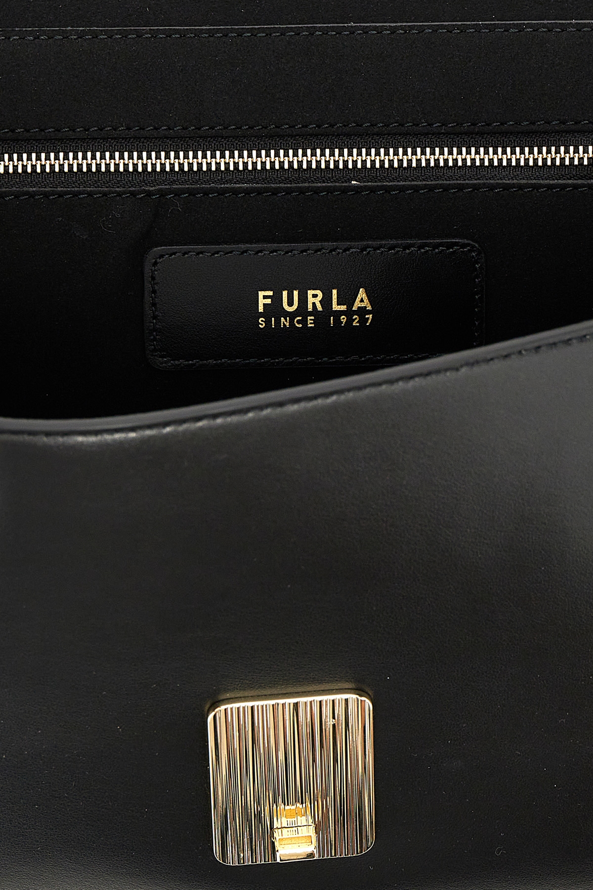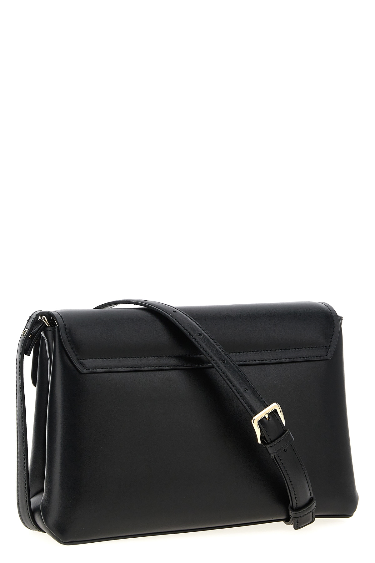 'Meridiana' leather shoulder bag, removable chain handle, flap closure with interlocking metal logo plate, adjustable and removable shoulder strap.