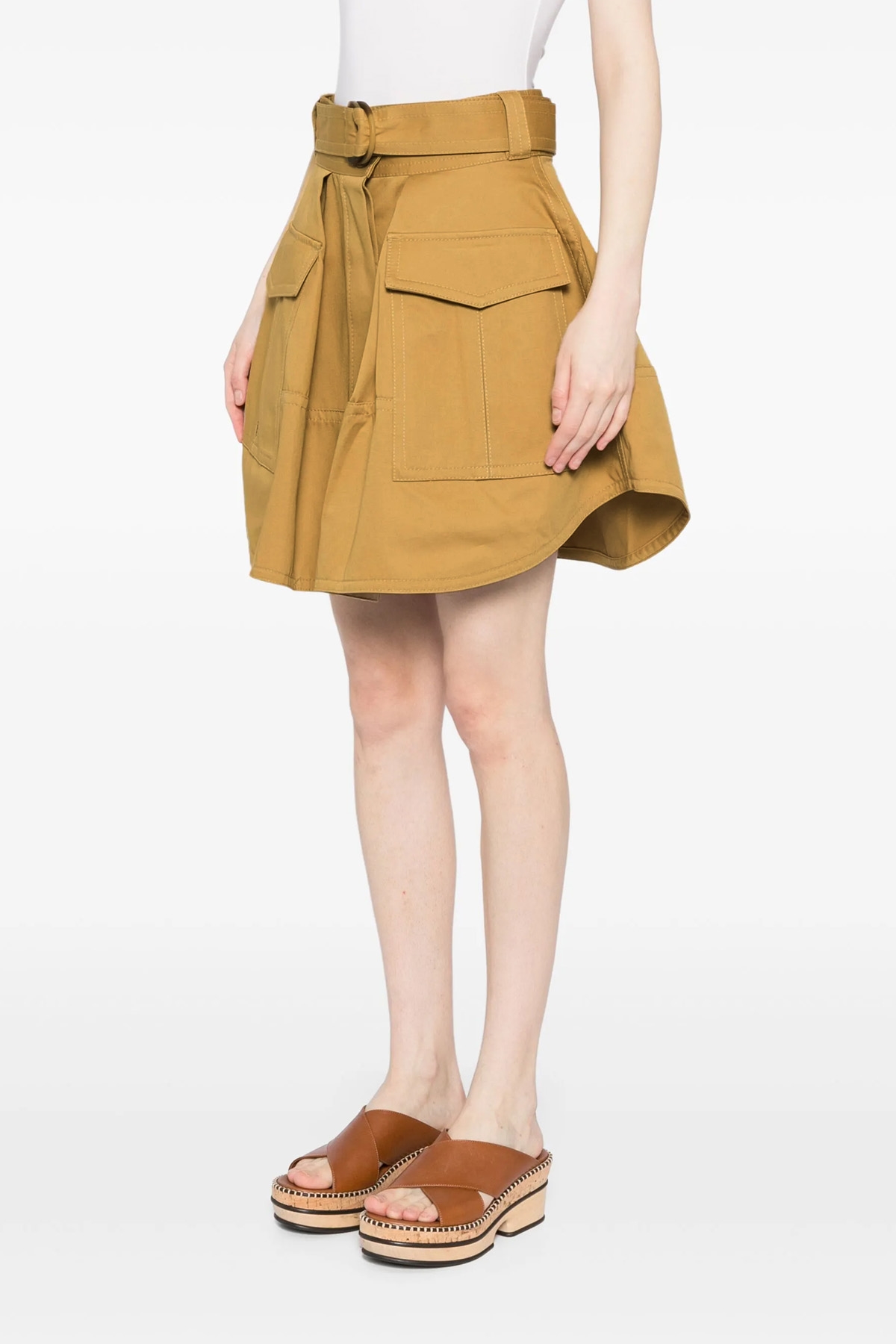 High-waisted 'Illuminte Cargo Mini' cotton skirt, cargo pockets and front button closure, removable belt.