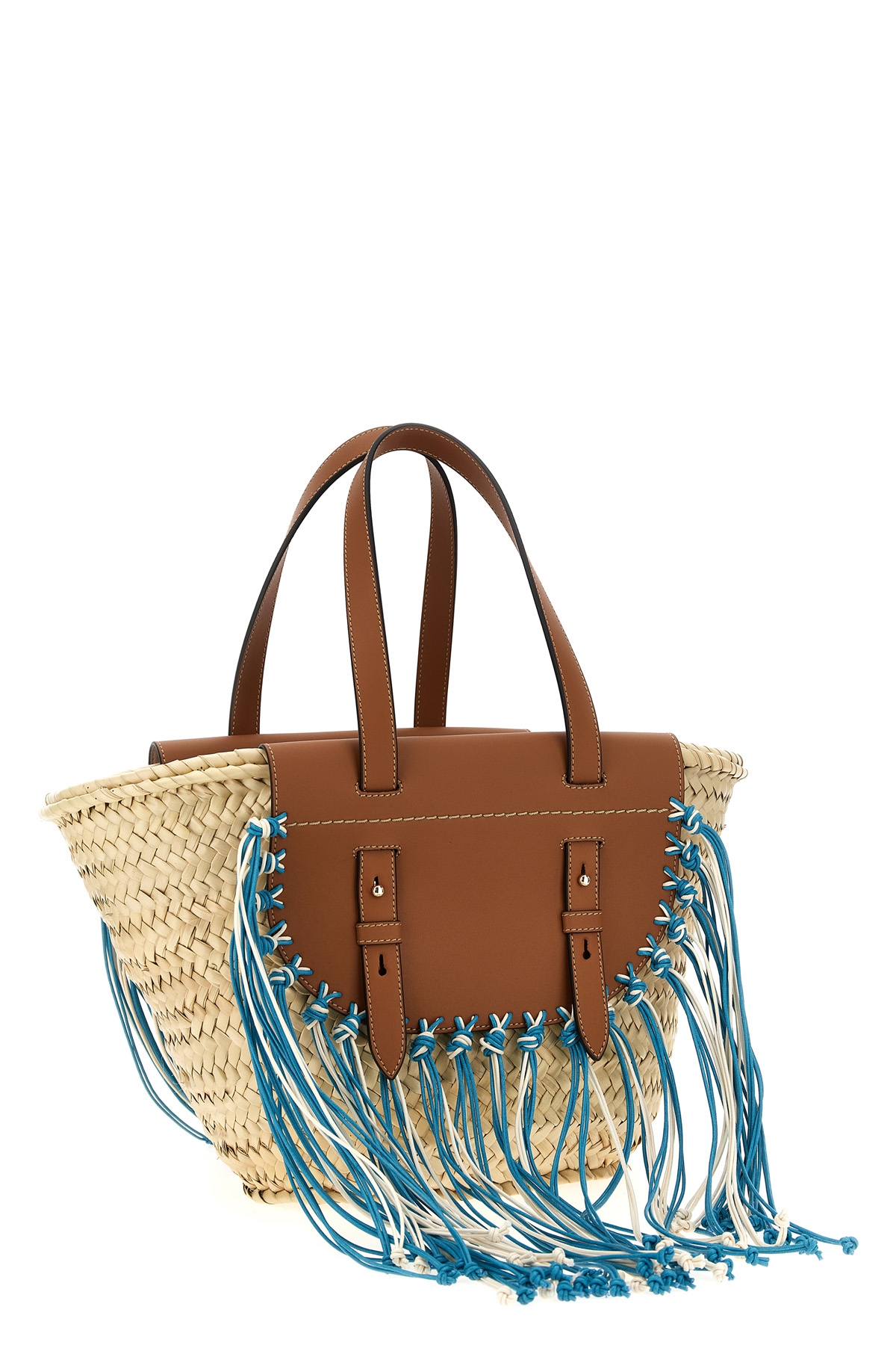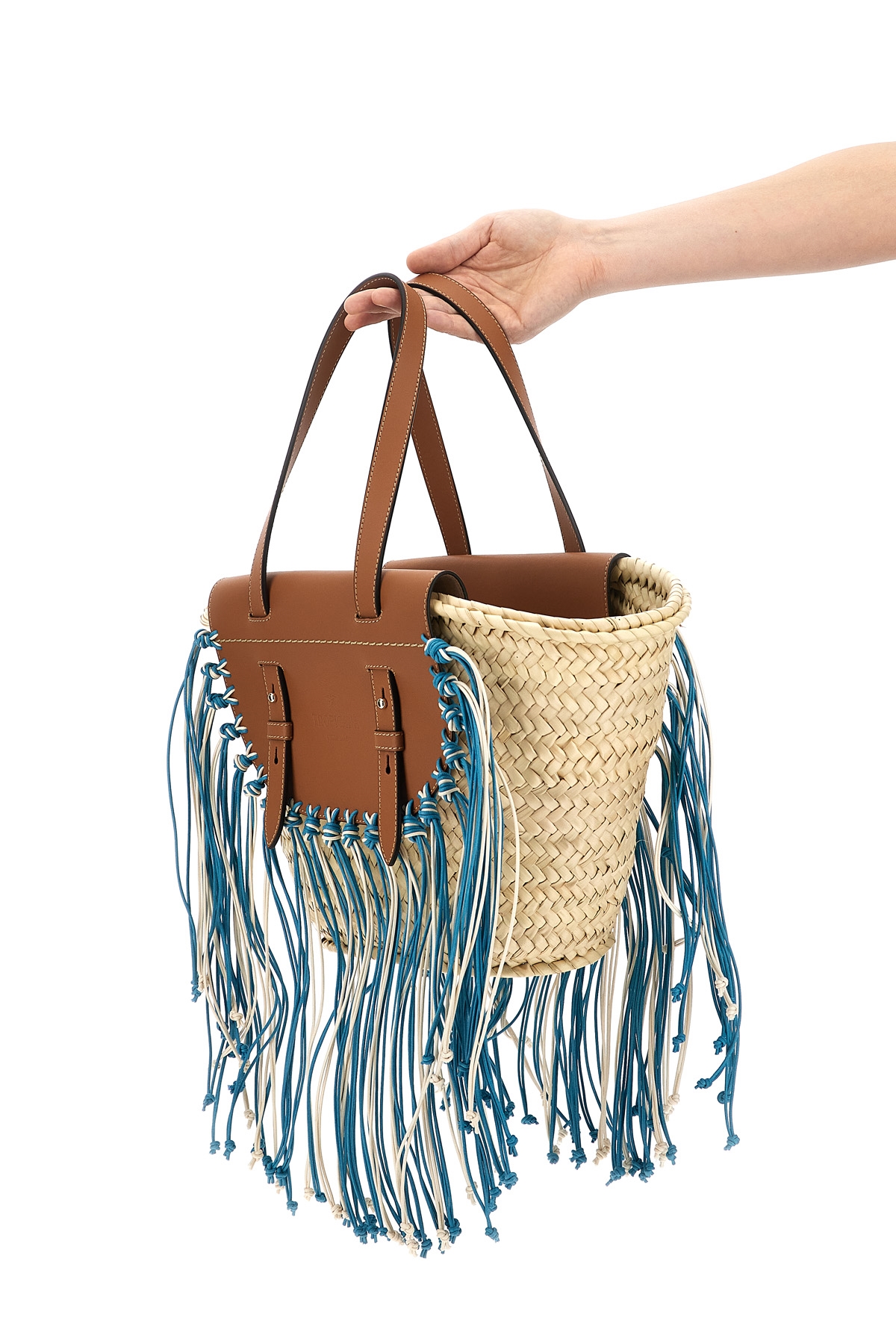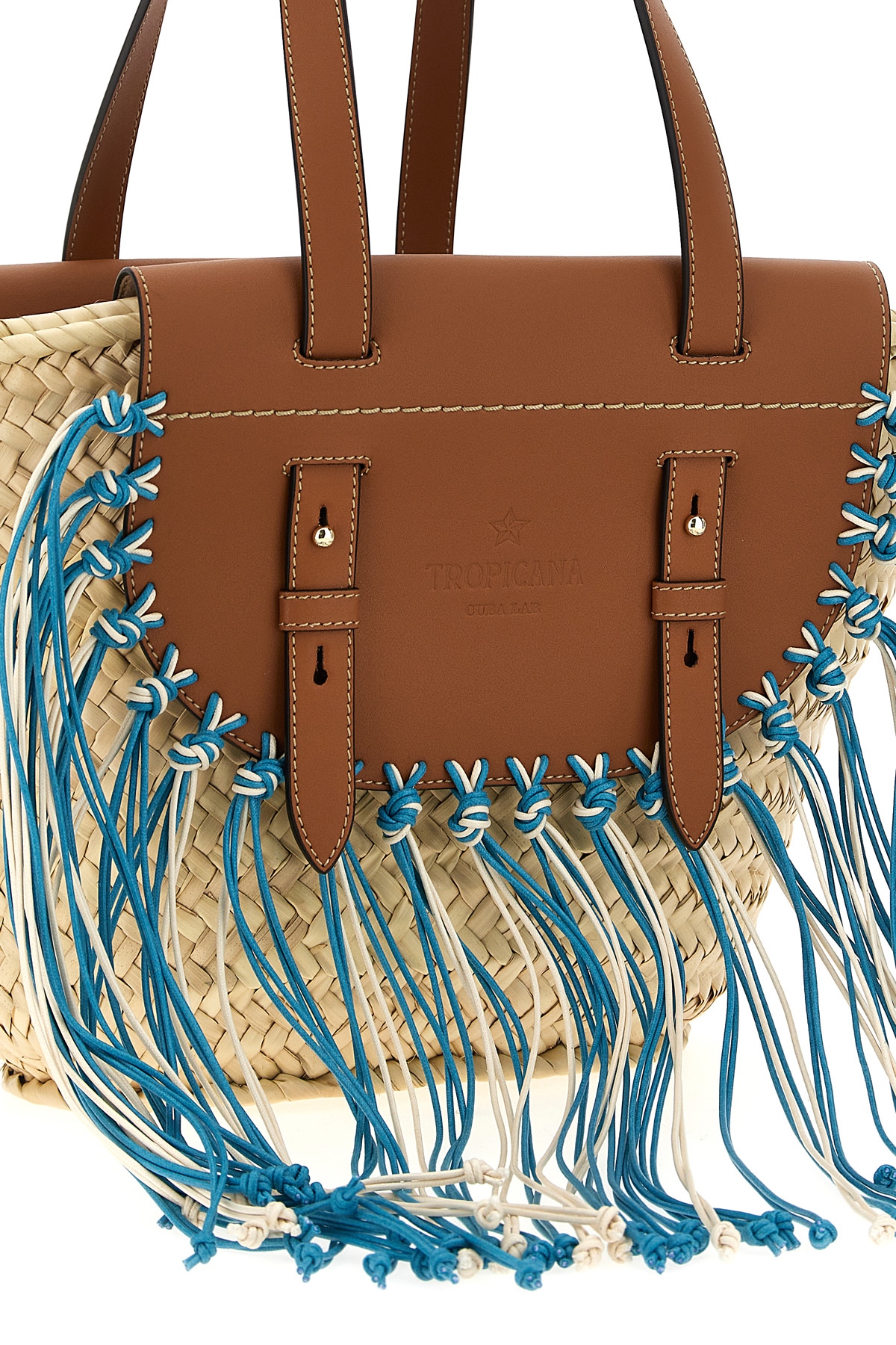 Cuba Lab x SanPa 'Tropicana' shopping bag in straw and leather with fringes, double adjustable handle, removable matching inner clutch.