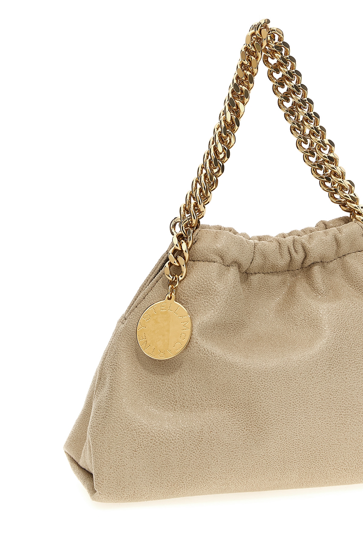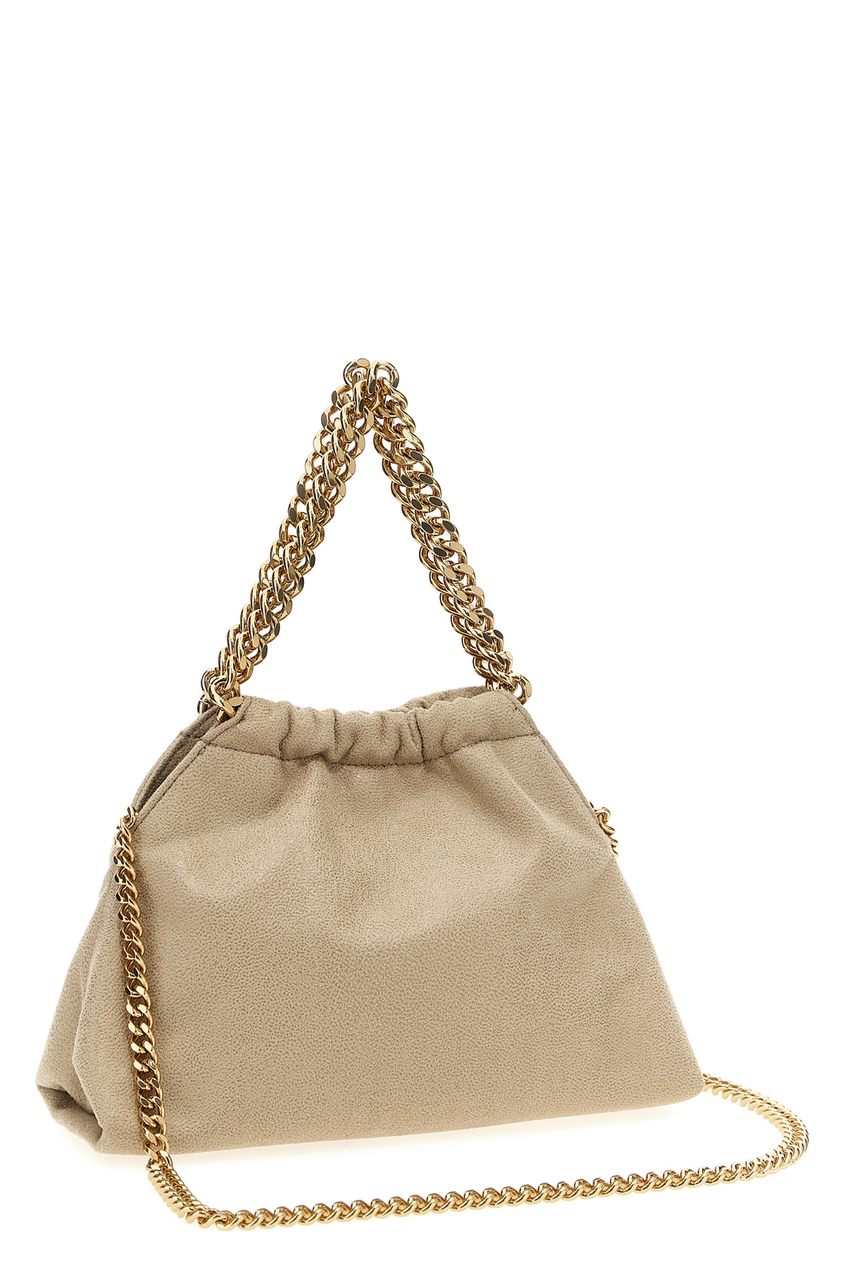'Falabella' crossbody bag in Shaggy Deer matt vegan fabric with semi-gloss grain, magnetic closure, double handle, diamond-effect chain shoulder strap. SUSTAINABLE: Products that do not use leather respecting cruelty free ethics