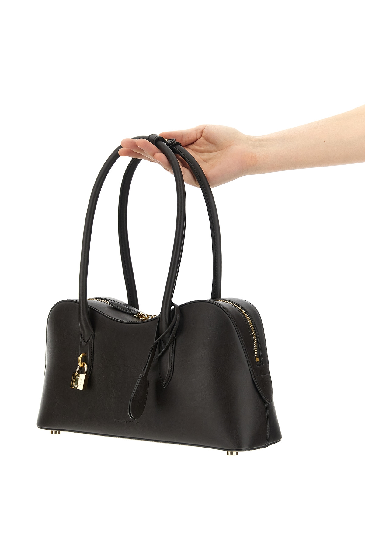 'Stella Ryder' shoulder bag in leather-effect fabric with metal padlock detail and front embossed logo, double fixed handle, zip closure. SUSTAINABLE: Products that do not use leather respecting cruelty free ethics
