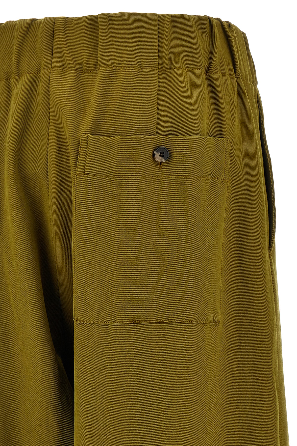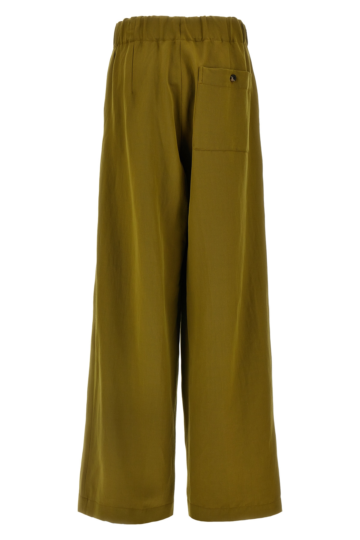 'Pila' wool blend pants, loose leg, elastic waistband with drawstring, pleats, pockets.
