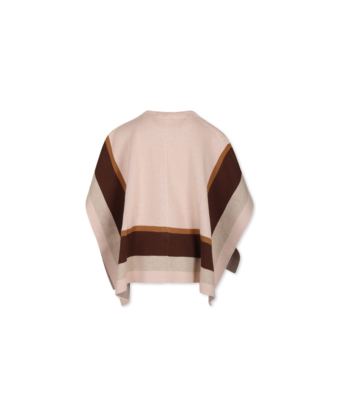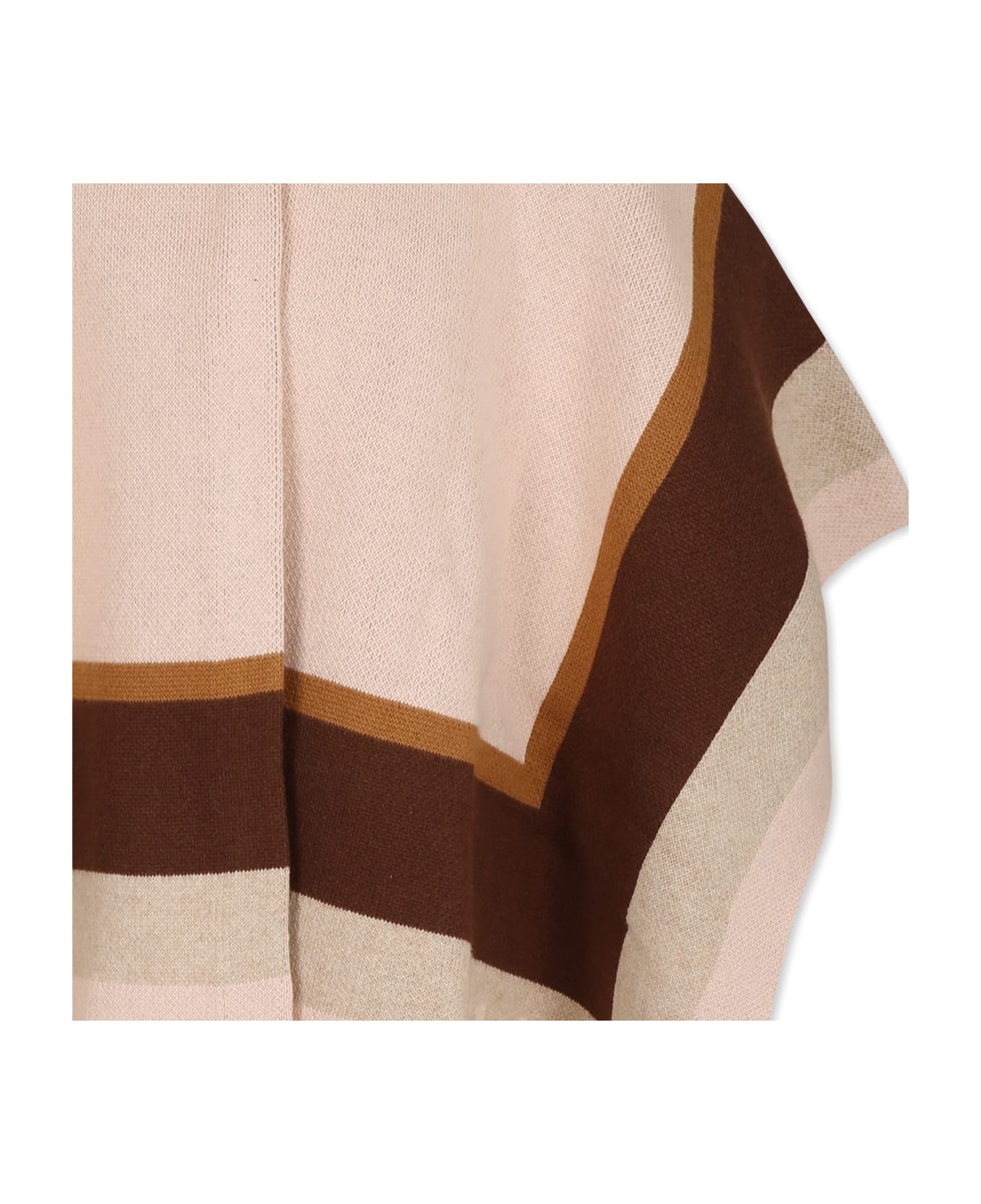Color: Pink Pink cape from the French brand Chloe Kids, made of cotton blend and finely knitted, ideal for a chic look in perfect Parisian style. The cape features a comfortable front closure with a gold buckle and a brown and beige striped pattern, inspired by the Maisons color palette. It is embellished with jacquard Chloe logo on the bottom which adds a recognizable touch to the look. 90% Organic Cotton, 10% Wool. Hand wash.