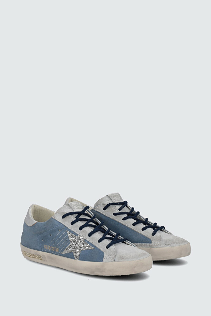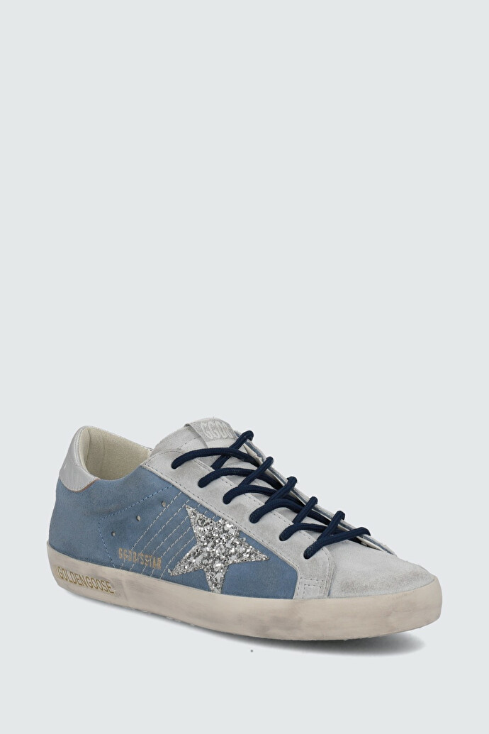 Super Star Golden Goose Sneakers in suede e upper glitter Color: Silver/blue/grey