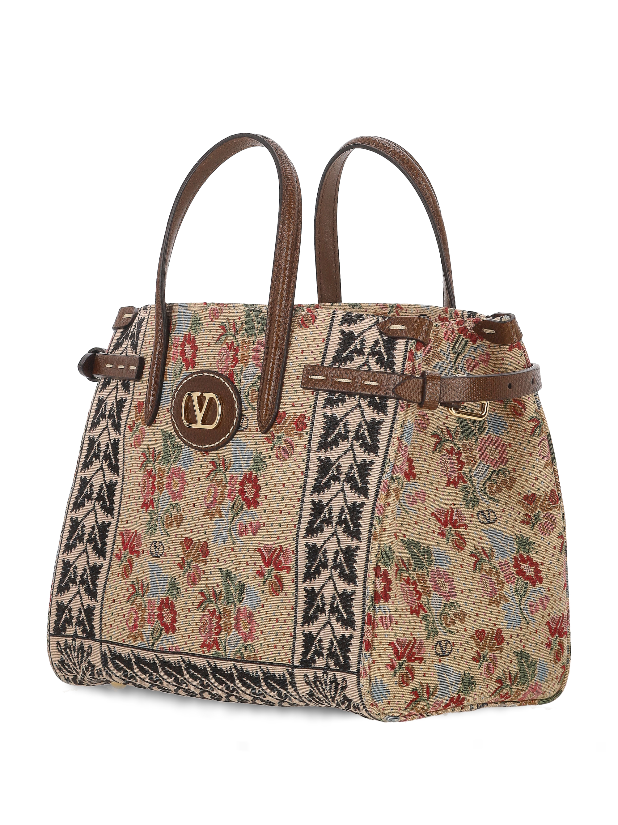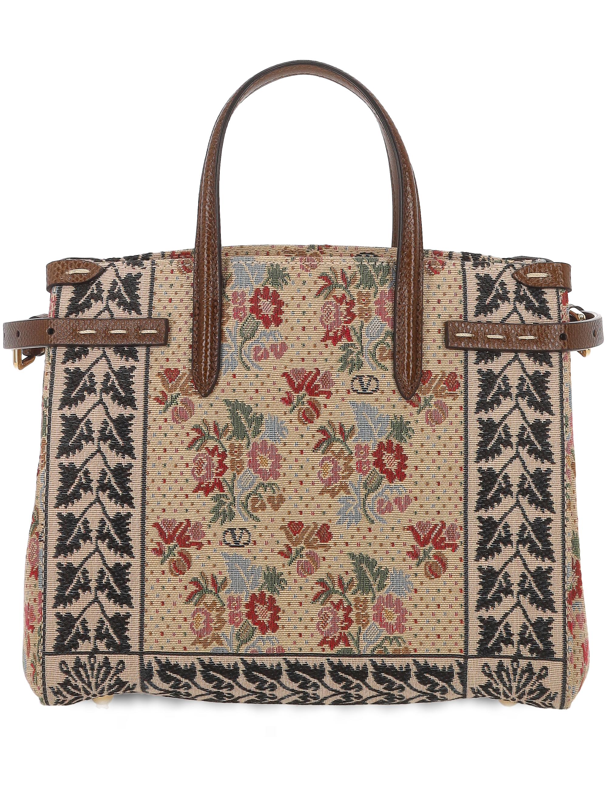 Brown magnetic fastening adjustable detachable shoulder strap internal zipfastening pocket patterned jacquard