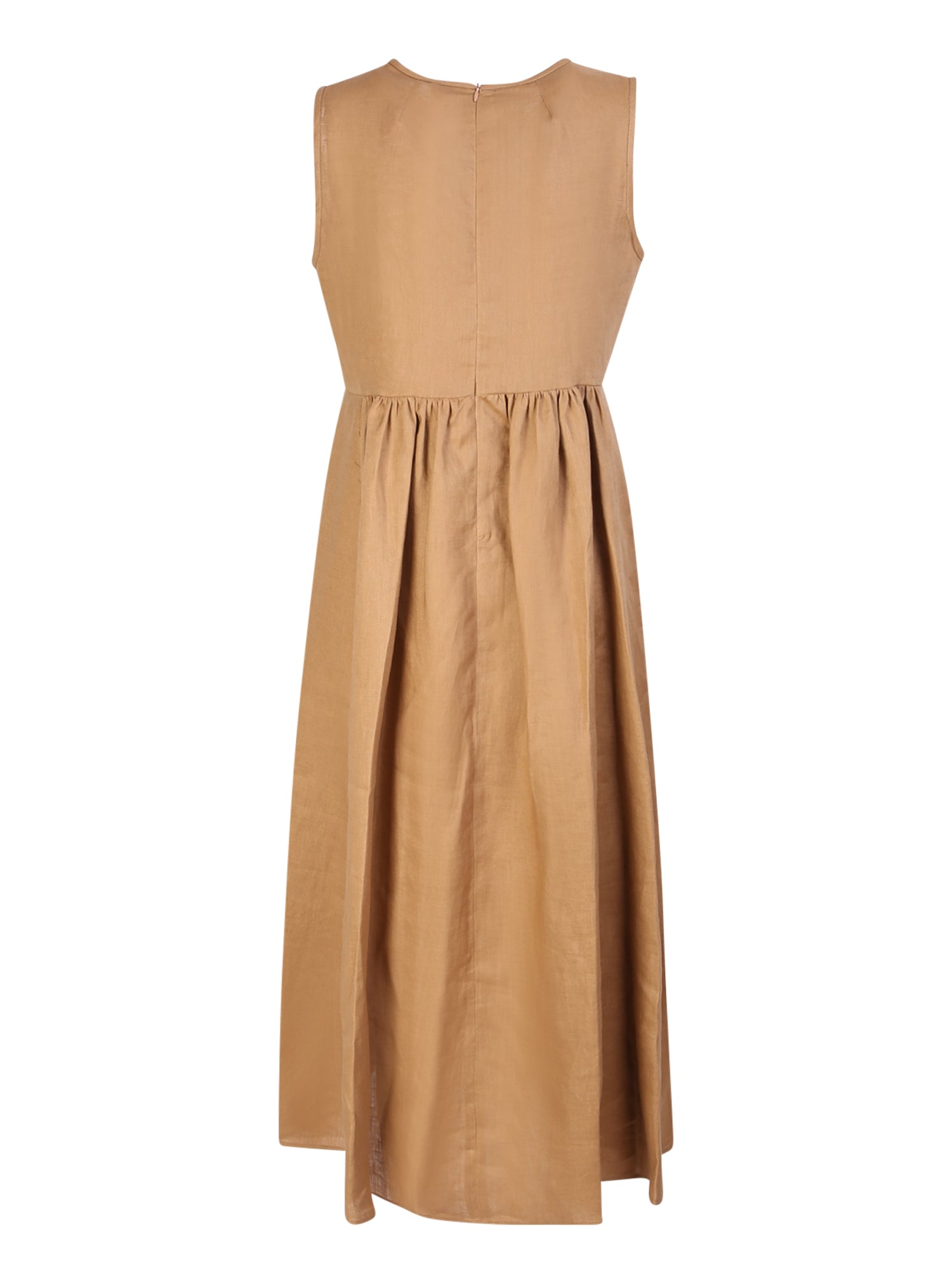 Beige linen dress by Blanca Vita the brand produces garments with a minimal design, boasting a refined elegance given by the neutral colours used