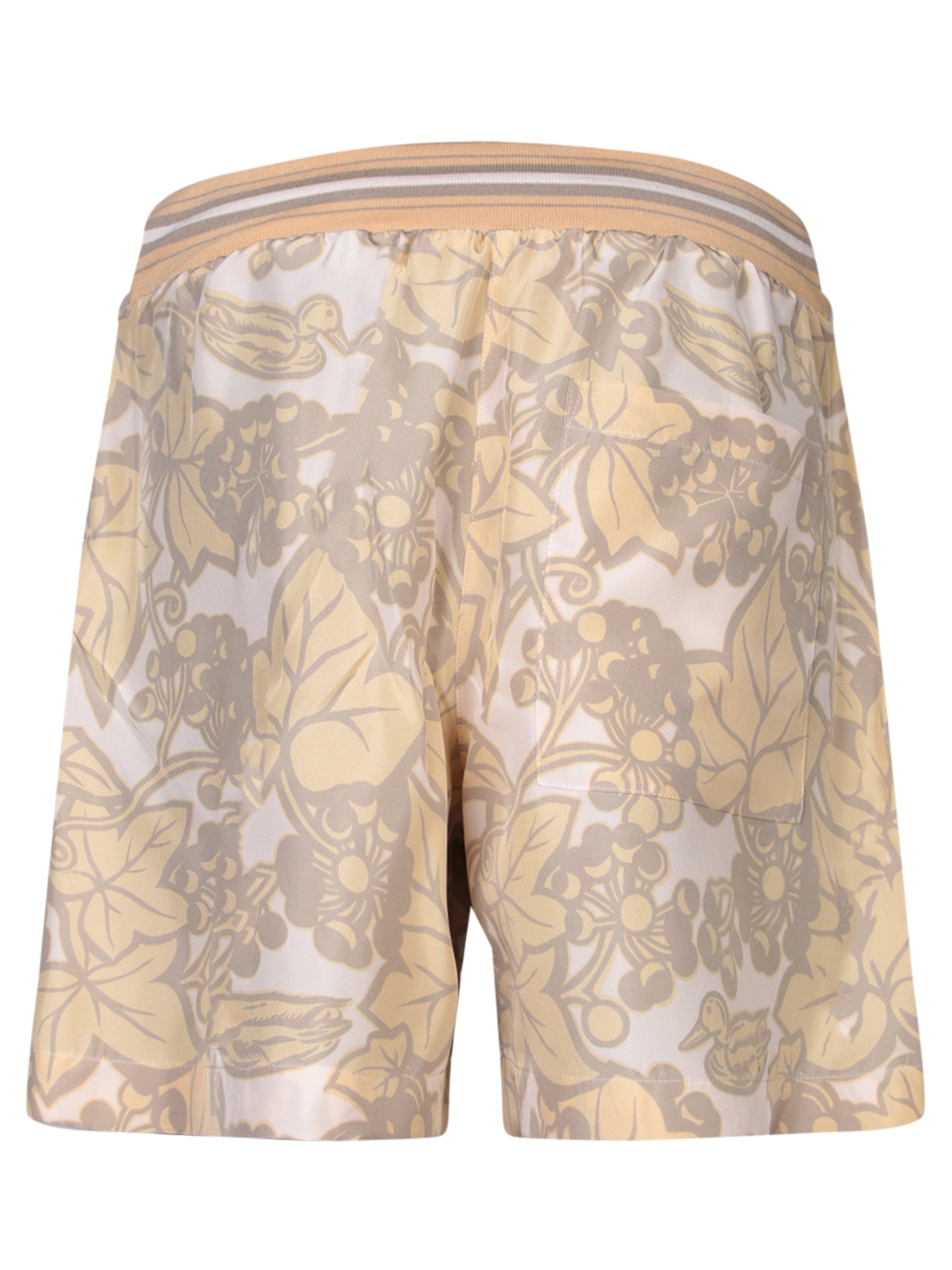 Light silk shorts, elastic waistband, ivy print design.