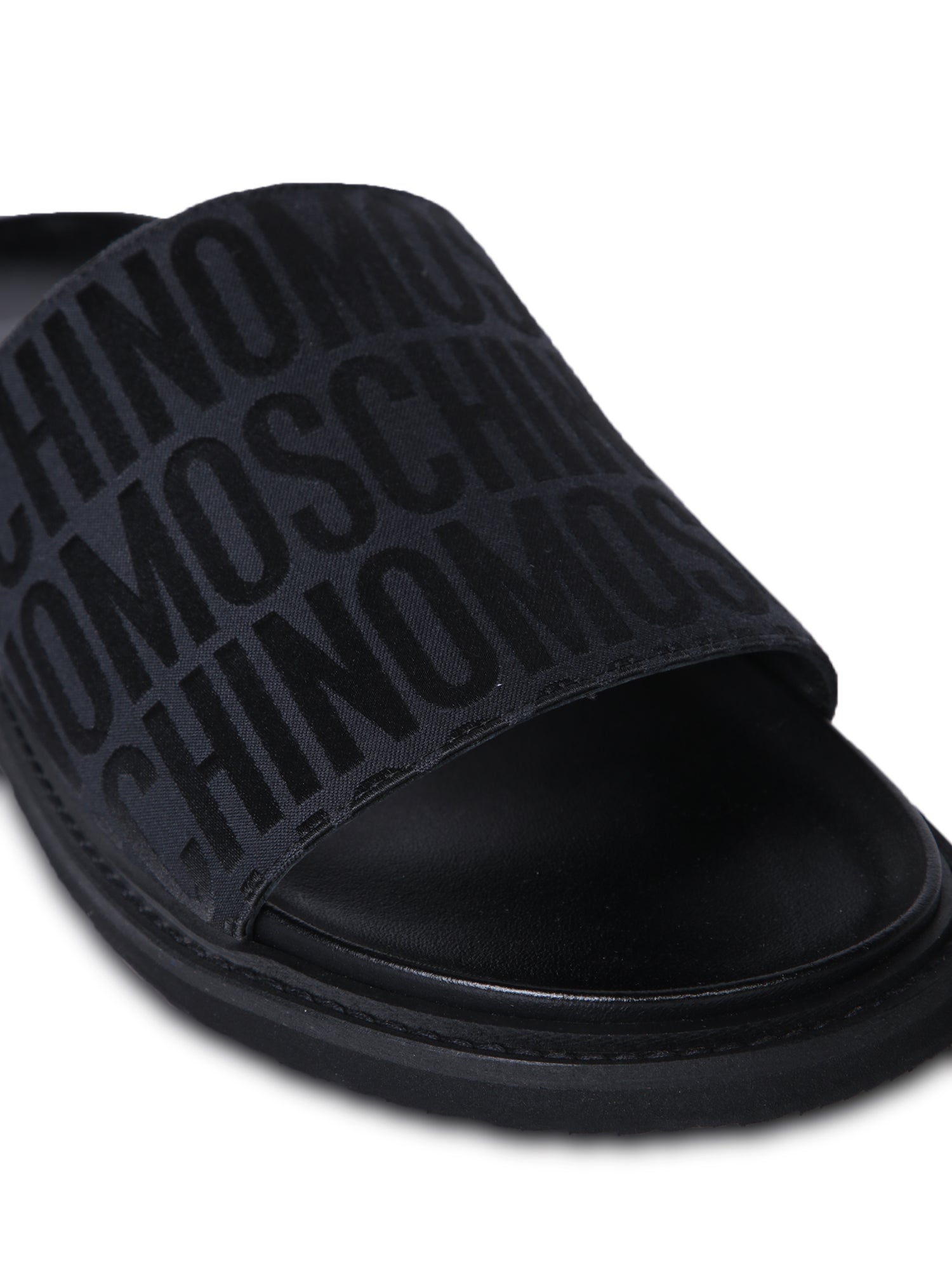 Sandals featuring a band design, tone-on-tone MOSCHINO logo. Non-slip sole, sharp edging.