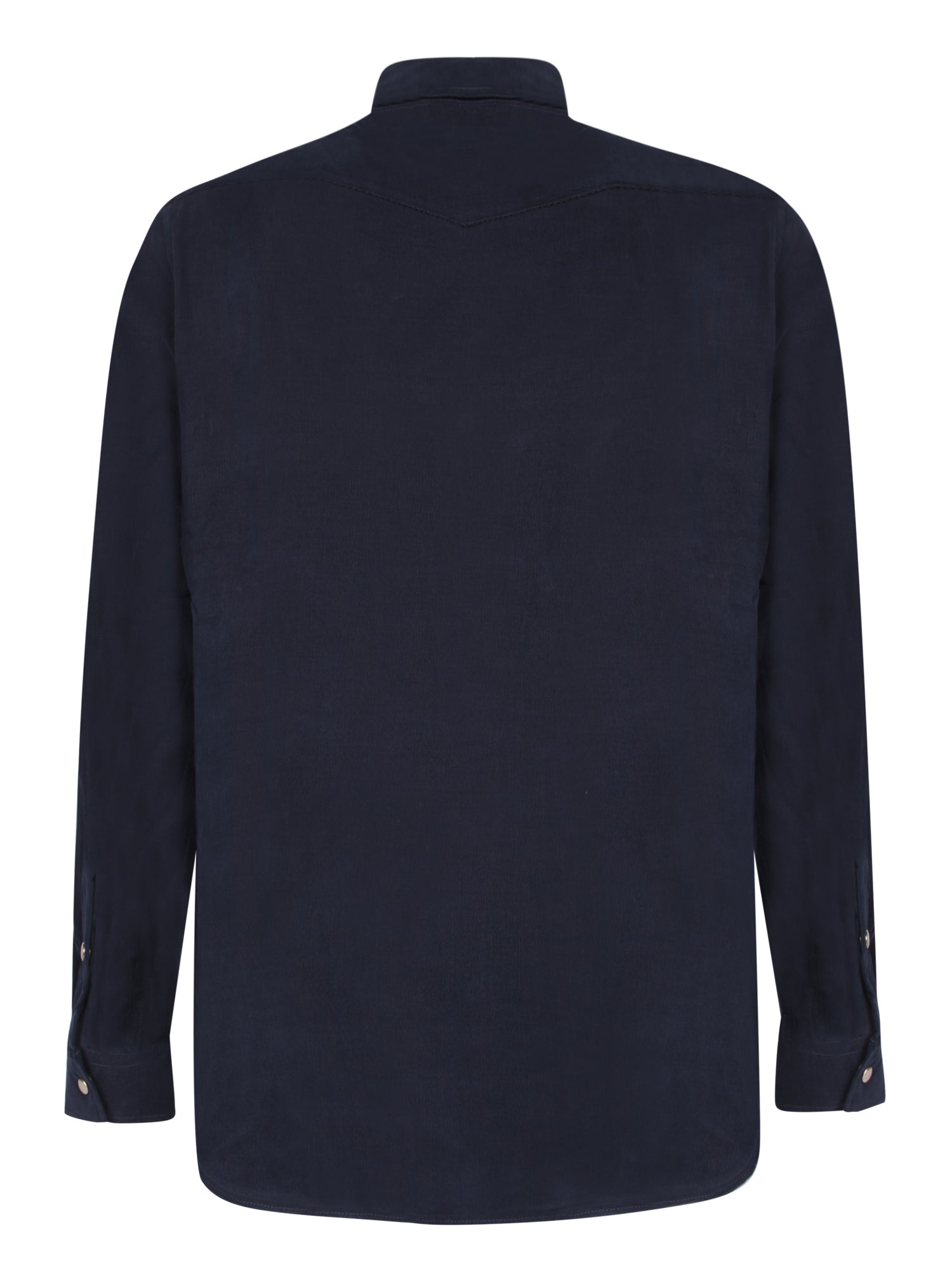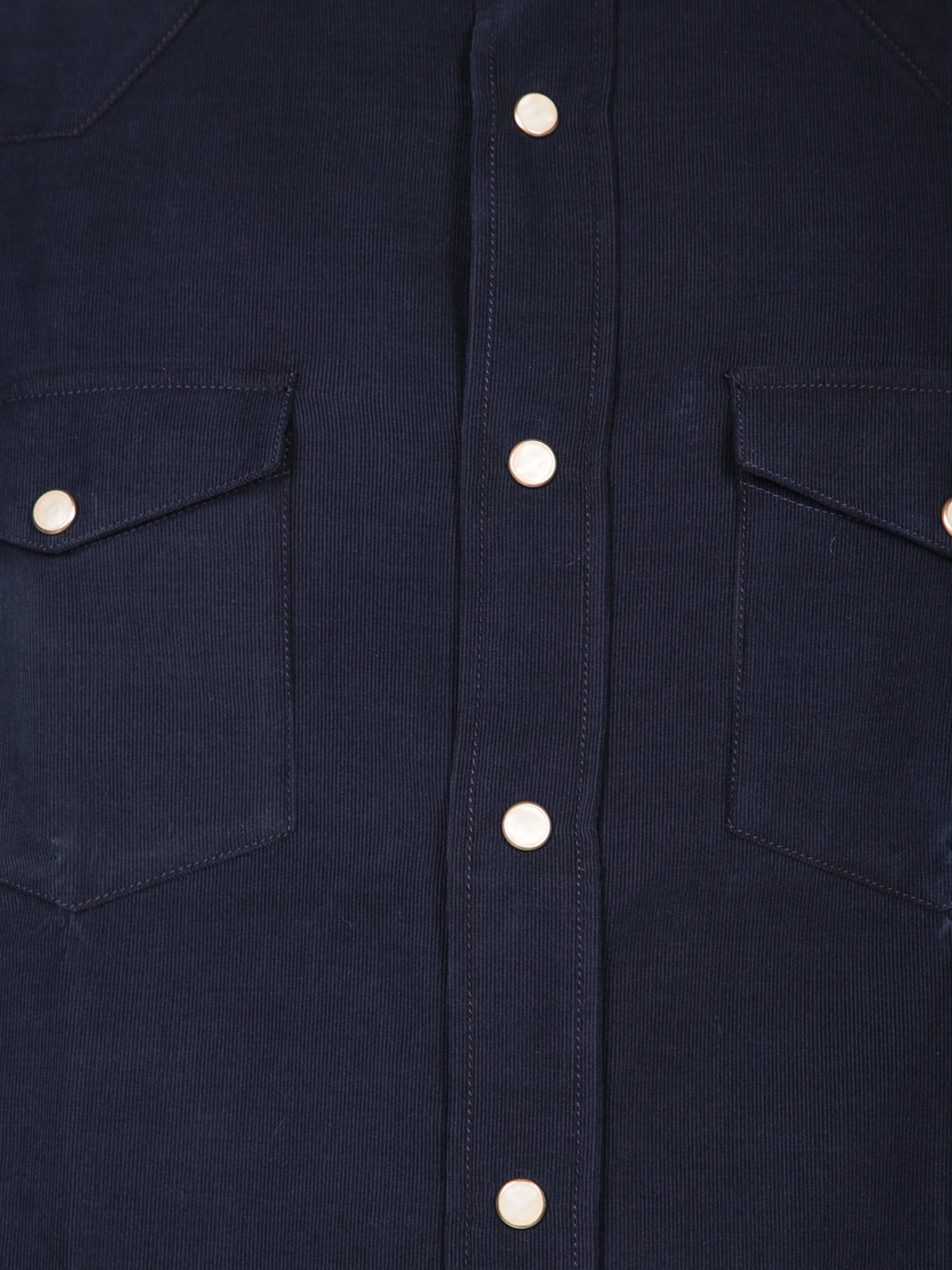 Corduroy shirt with button closure. Features a classic collar and two front flap pockets.