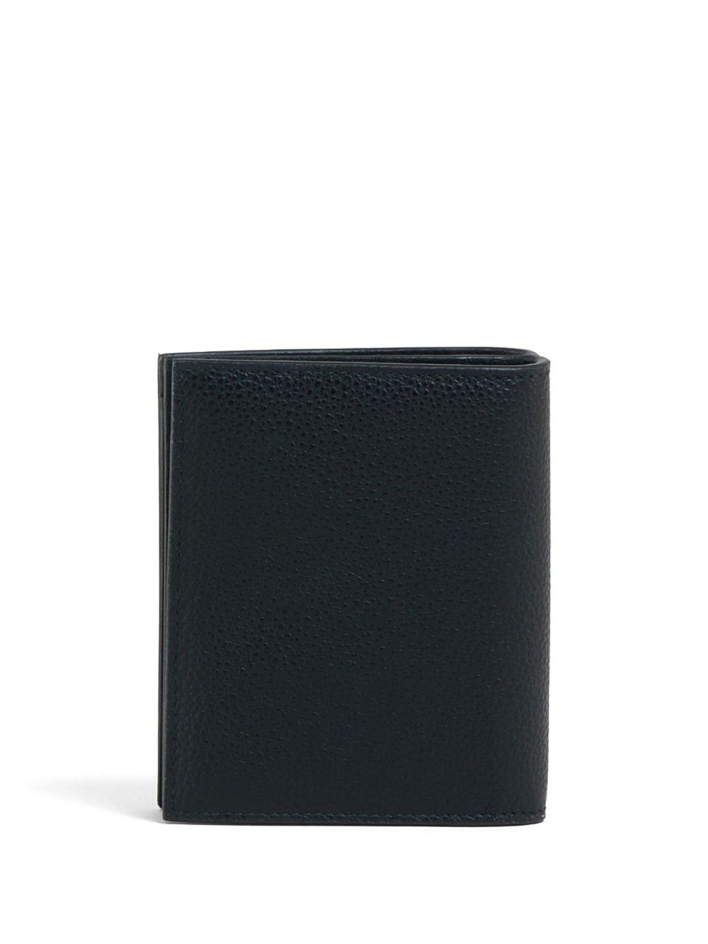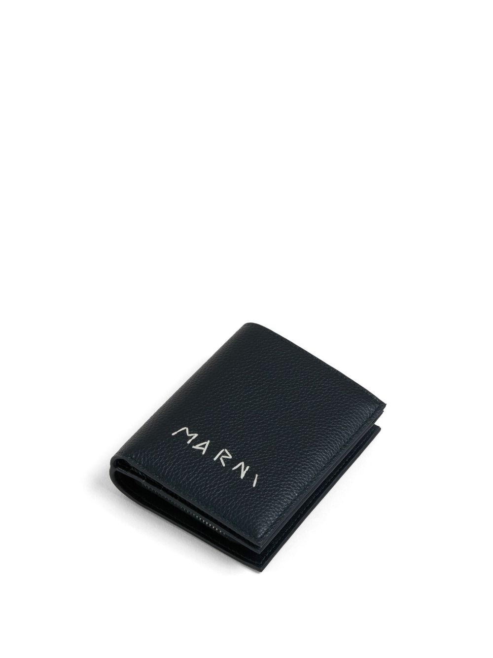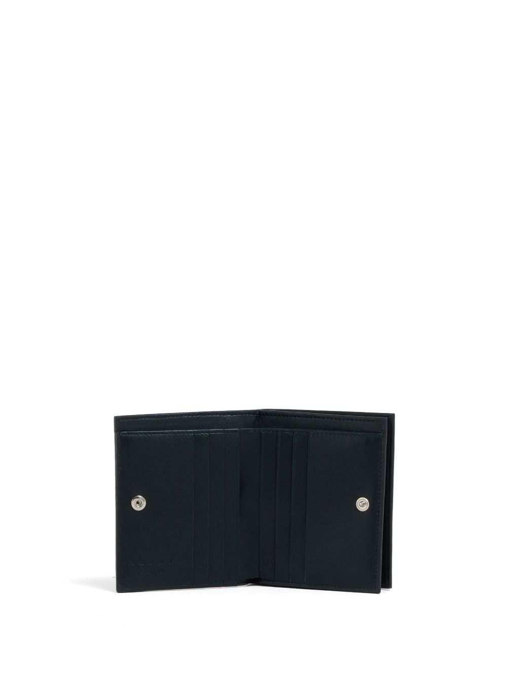 blackwhite calf leather grained texture embroidered logo to the front rear zipfastening pocket bifold design pressstud fastening internal note compartments internal card slots
