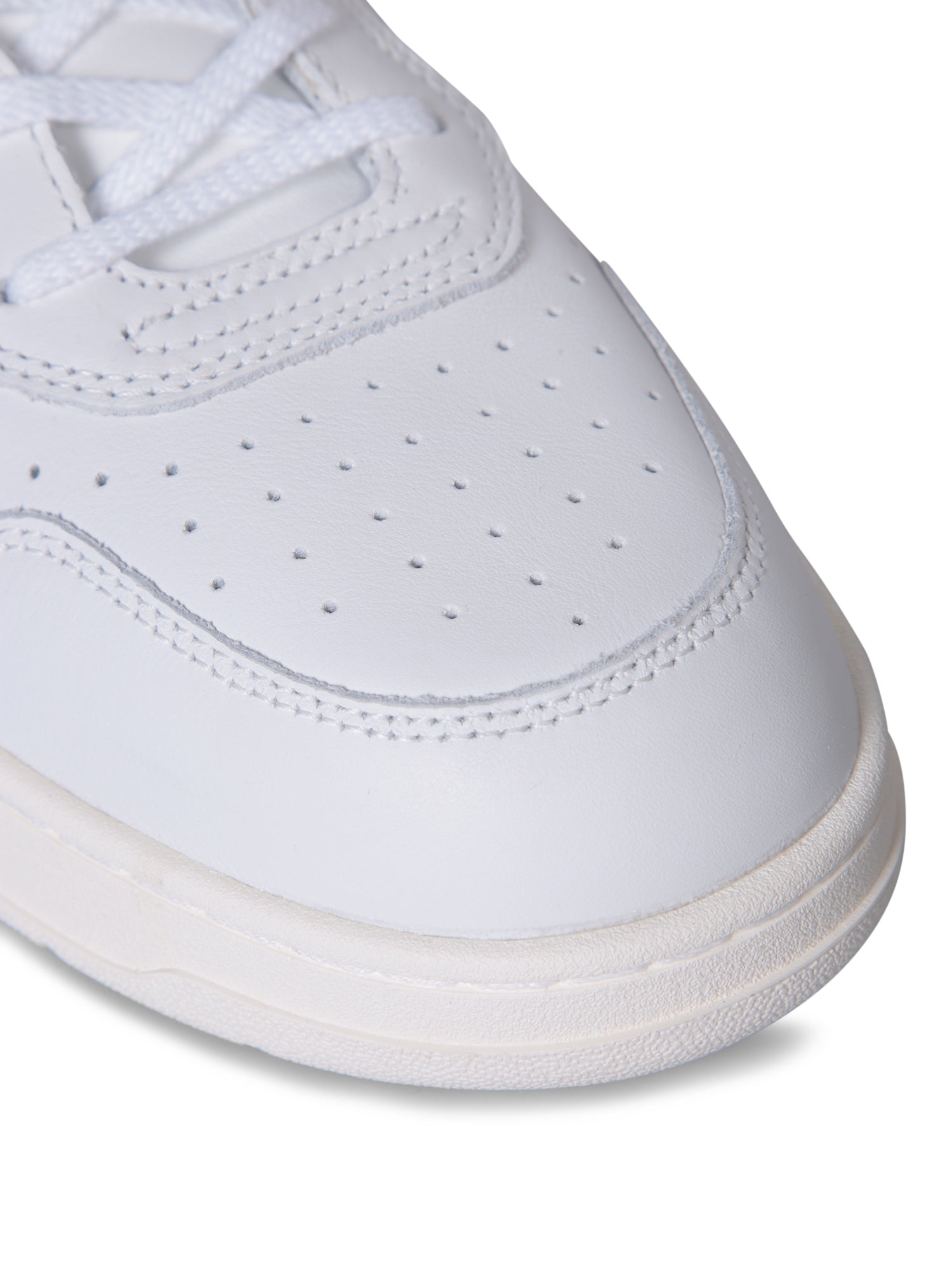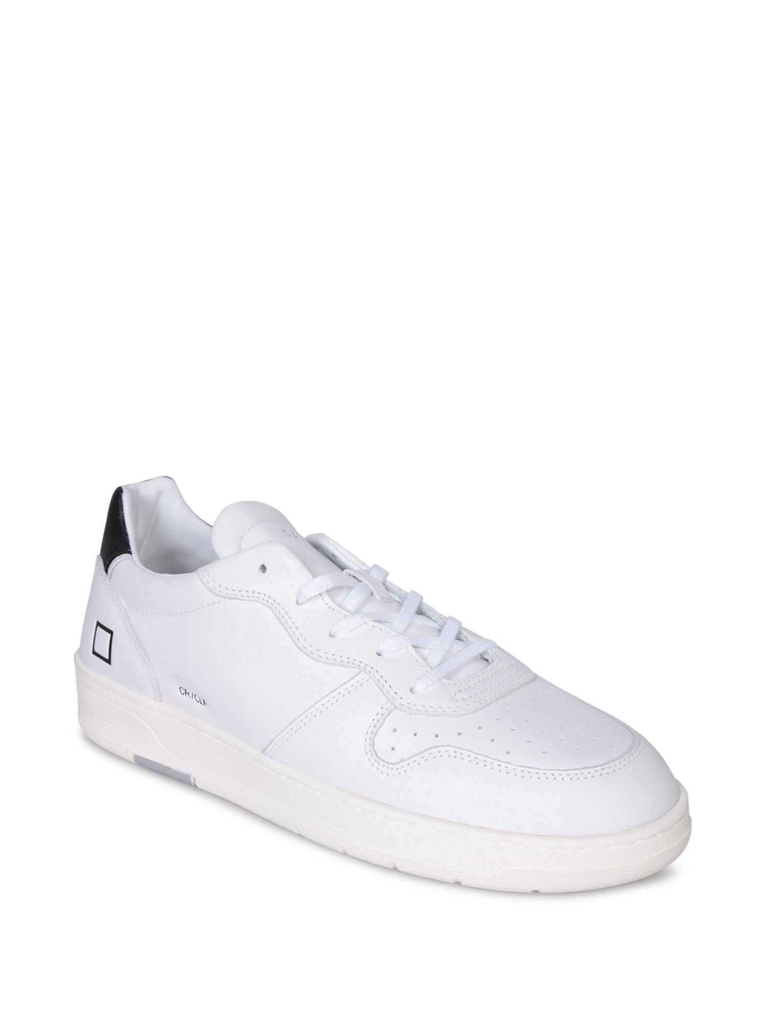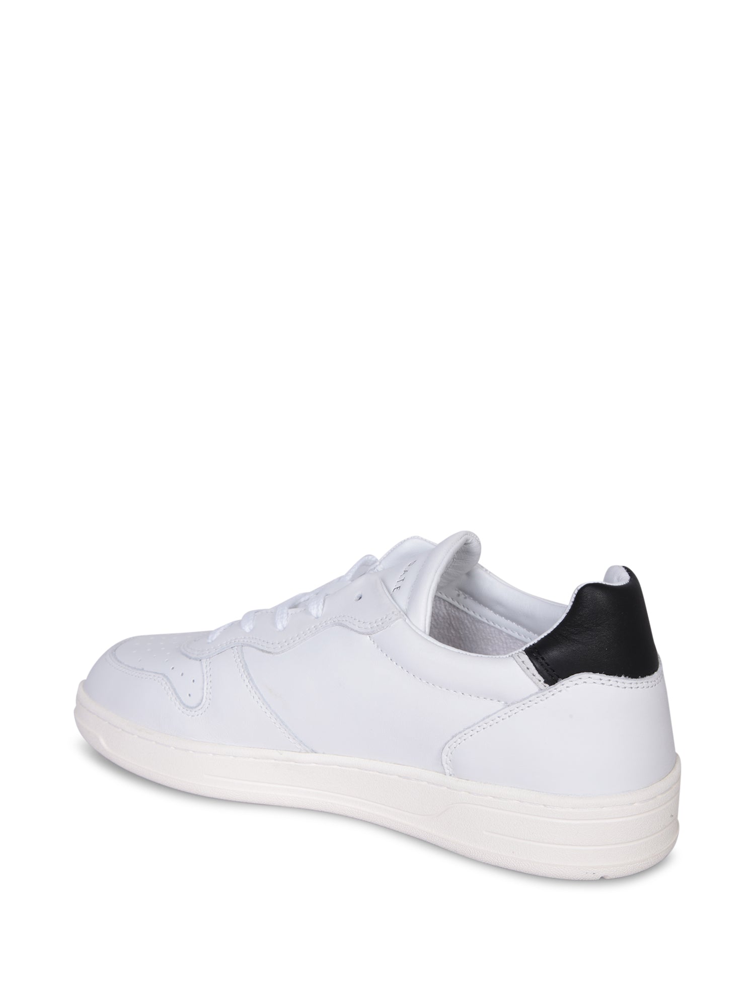 Leather sneakers, black and white color details, lateral logo, rubber sole.