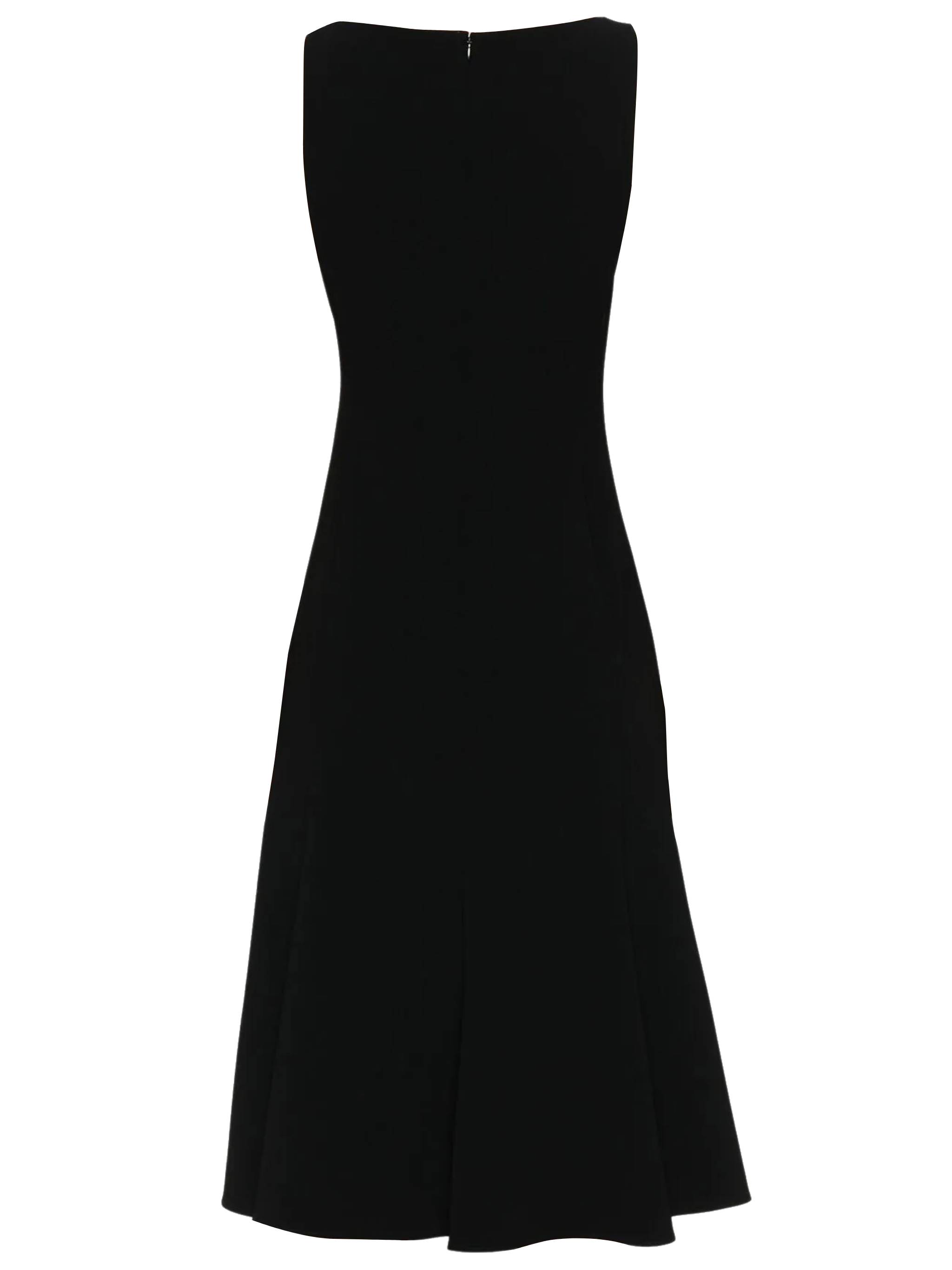black concealed rear hook and zip fastening round neck sleeveless peplum hem