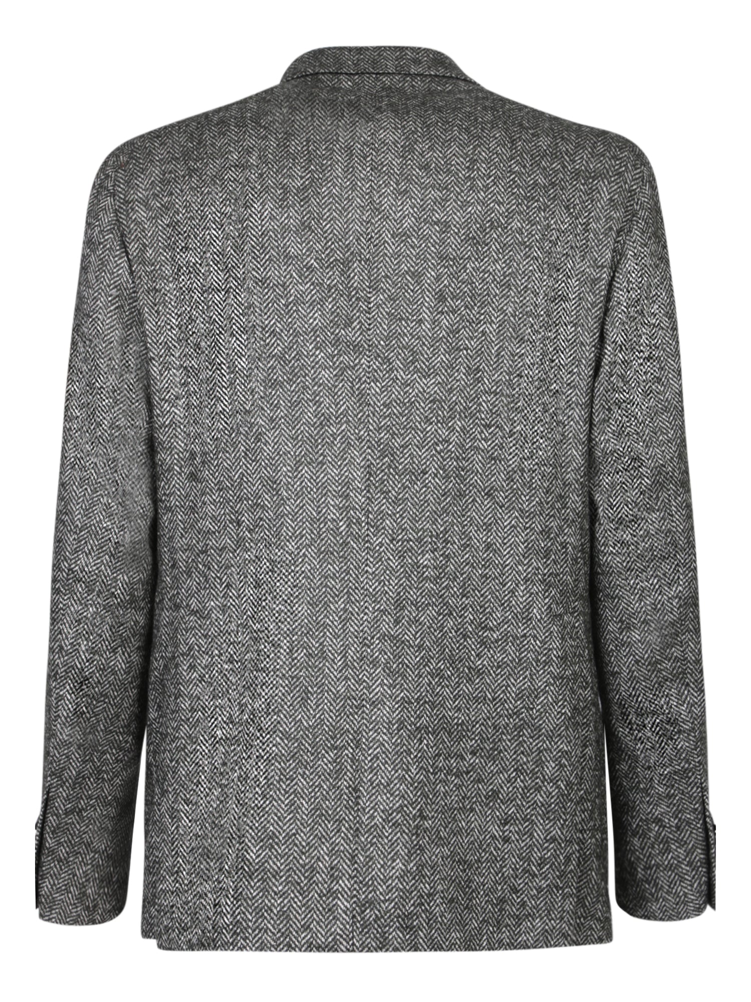 Herringbone fabric jacket. Three-button closure. Classic lapels.