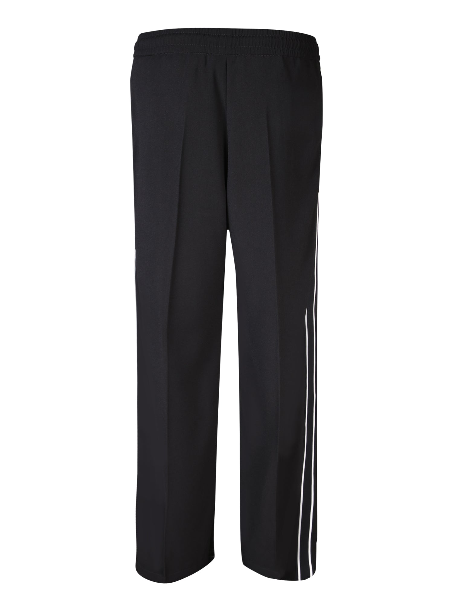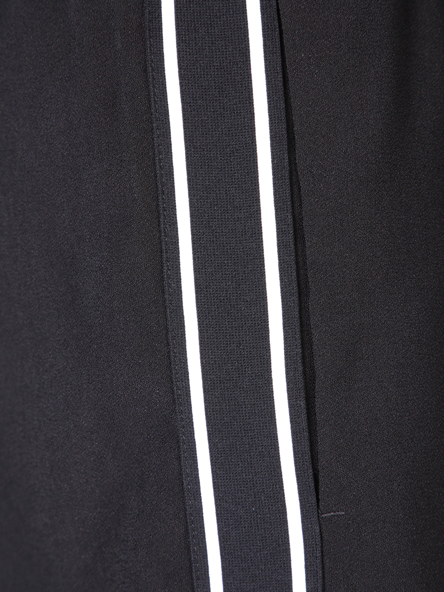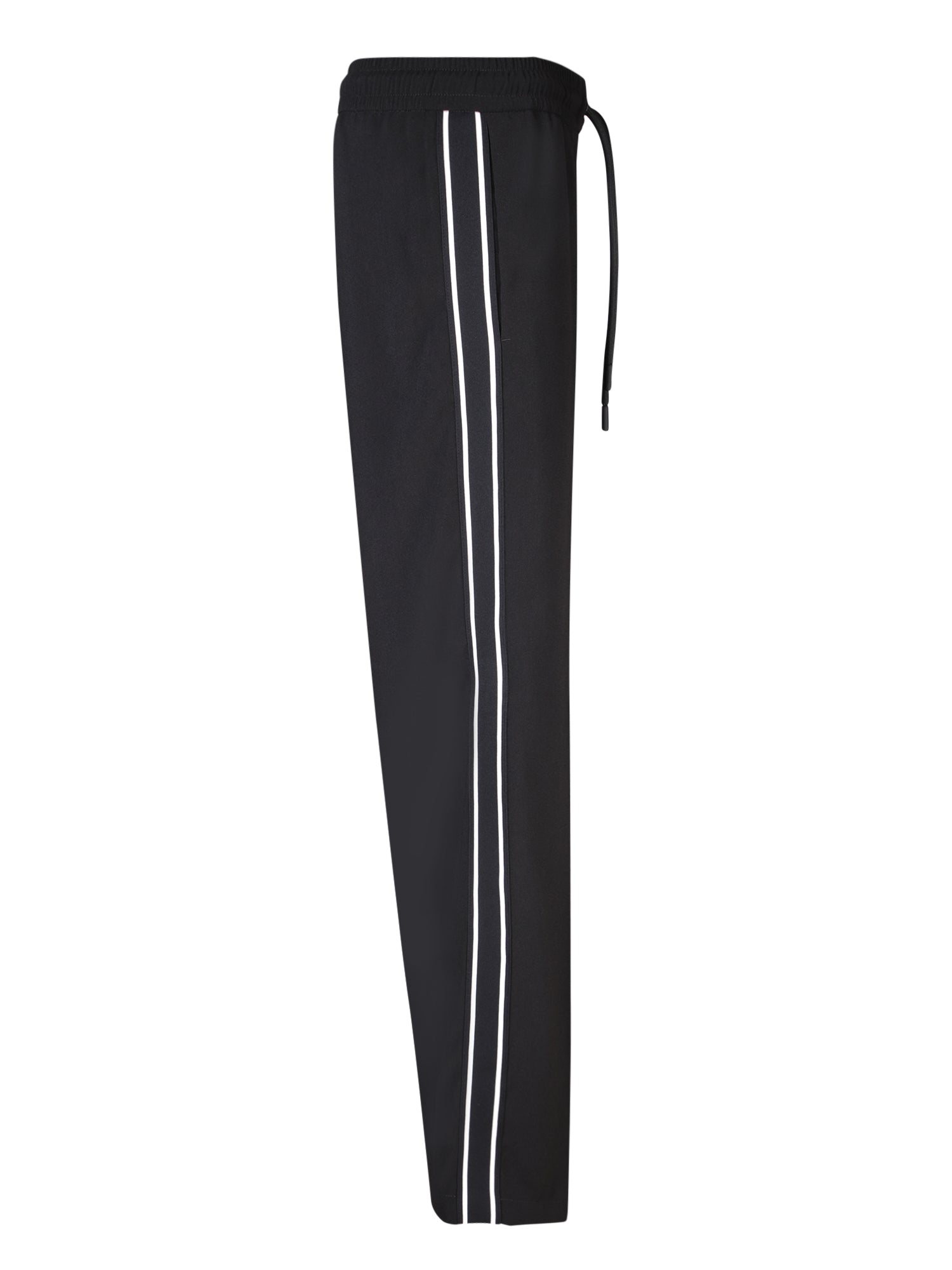 Elastic waistband with drawstring. Side pockets. Logo details along the side seams.