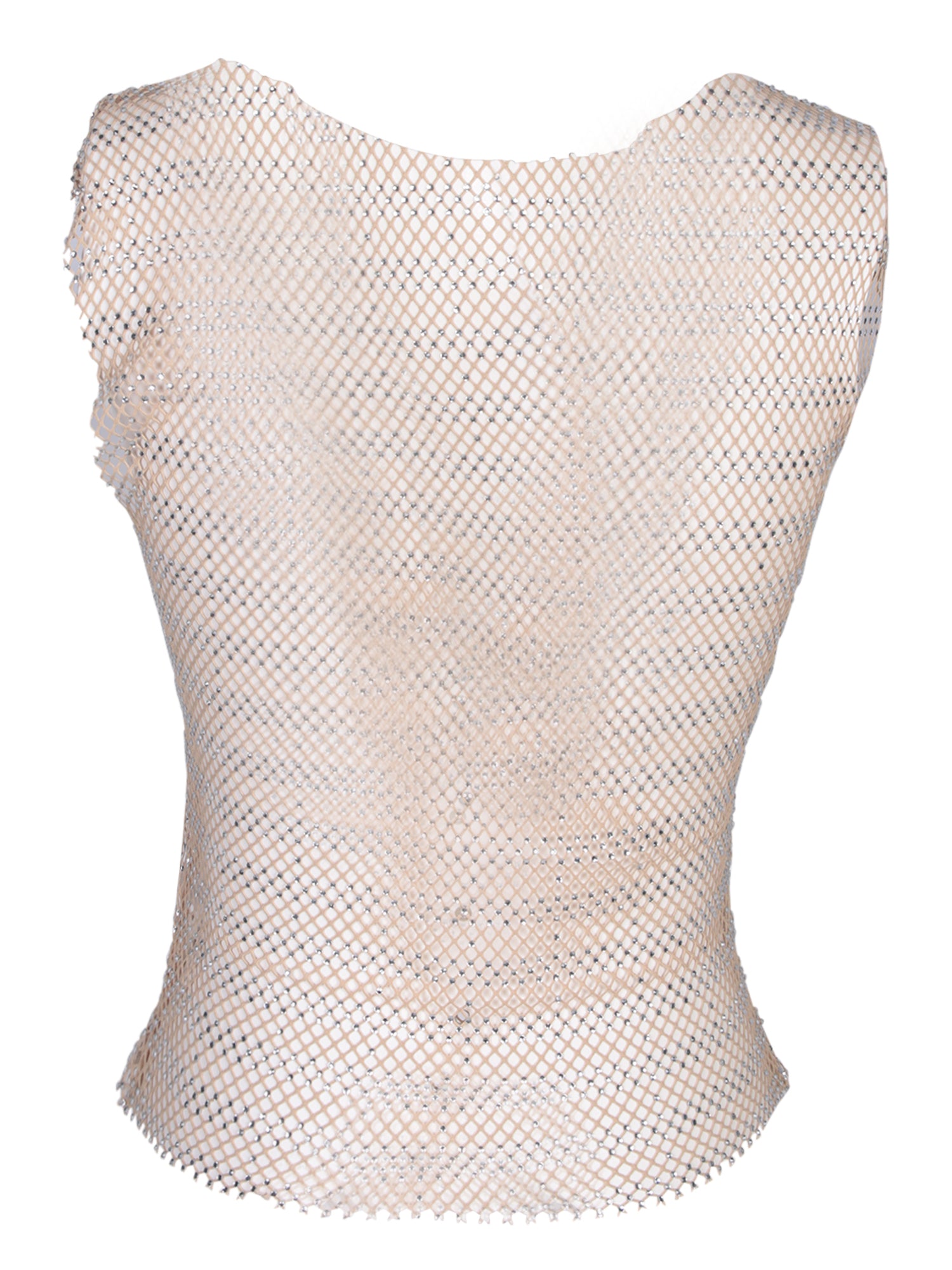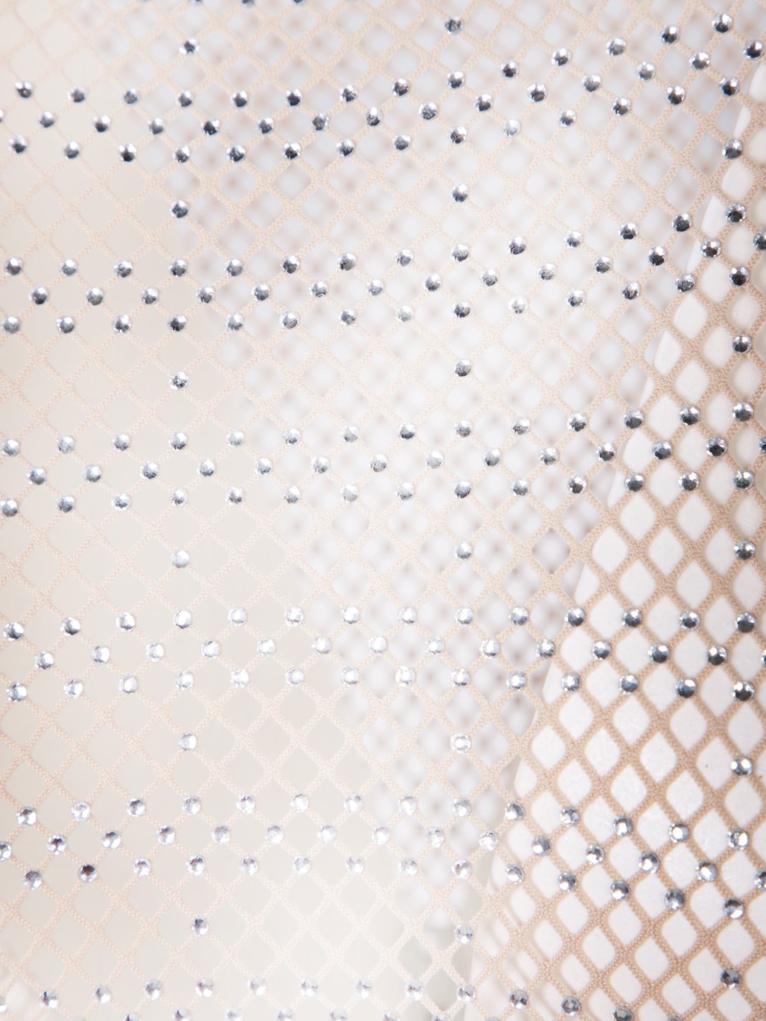 A seductive piece with an intriguing design. The net texture adorned with sparkling rhinestones makes it a standout element for evening outfits.