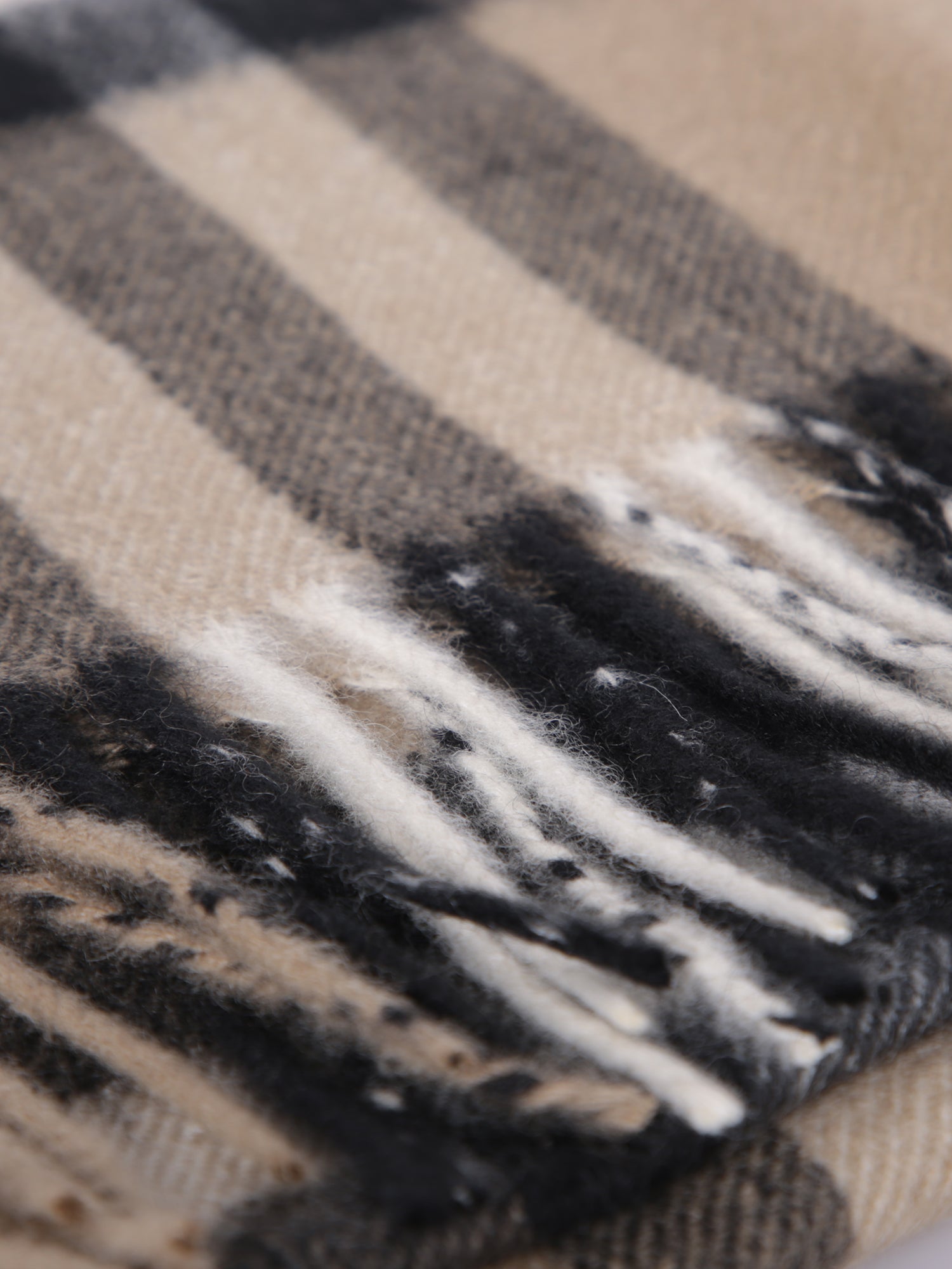Soft cashmere scarf featuring the classic check pattern. Fringed edges.