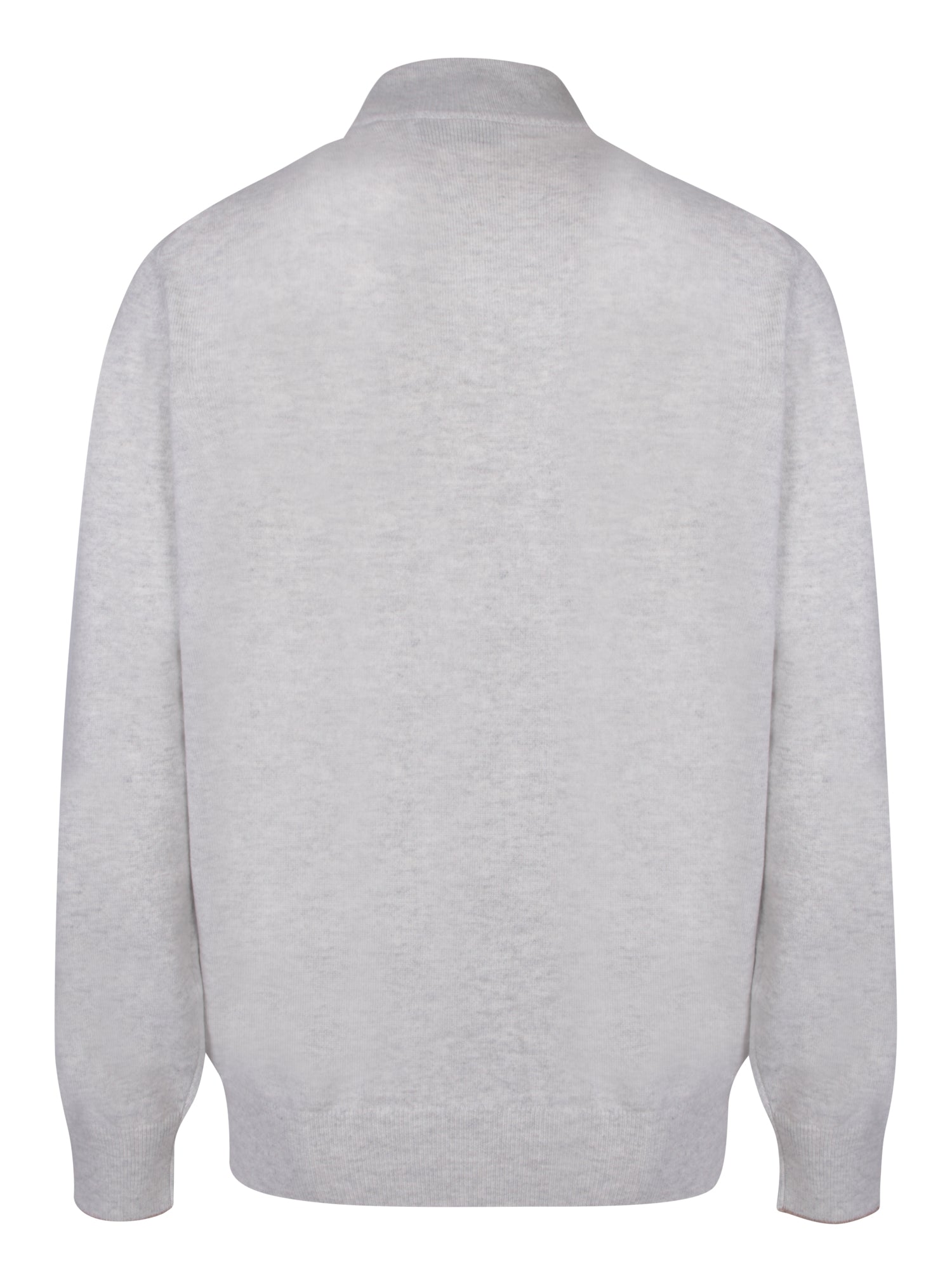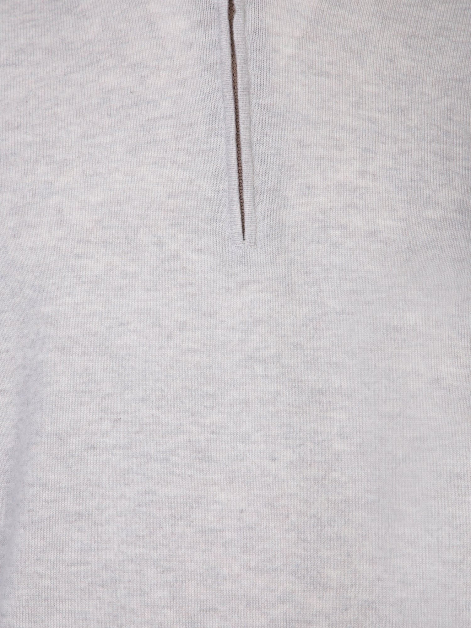 High neck. Half-zip closure. Ribbed cuffs and hem.