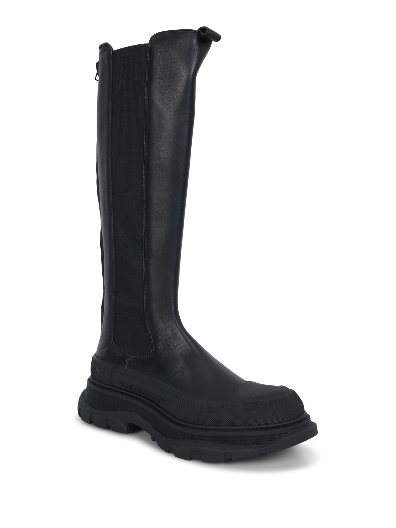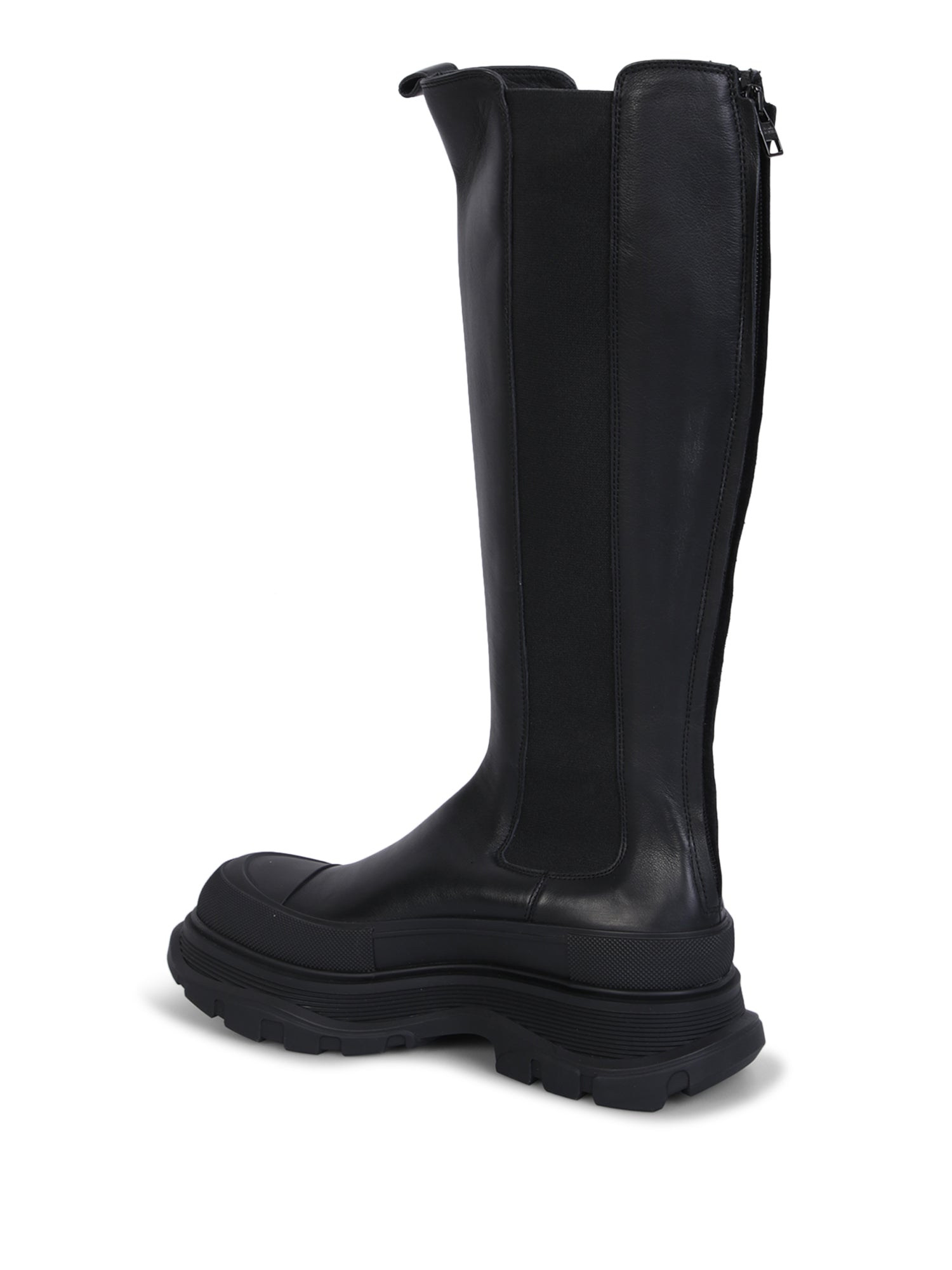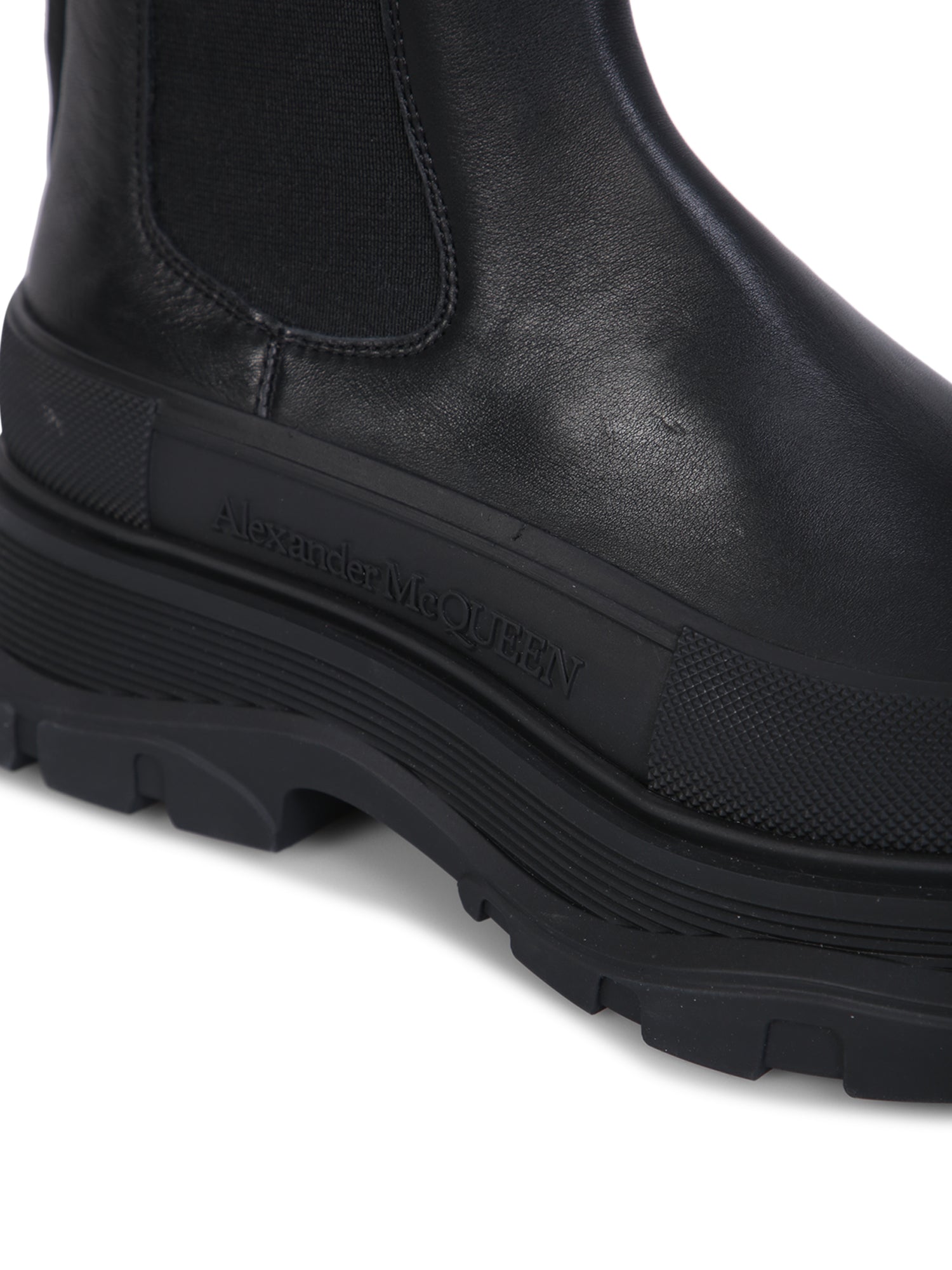 High tread boots with chunky sole crafted from leather by Alexander McQueen