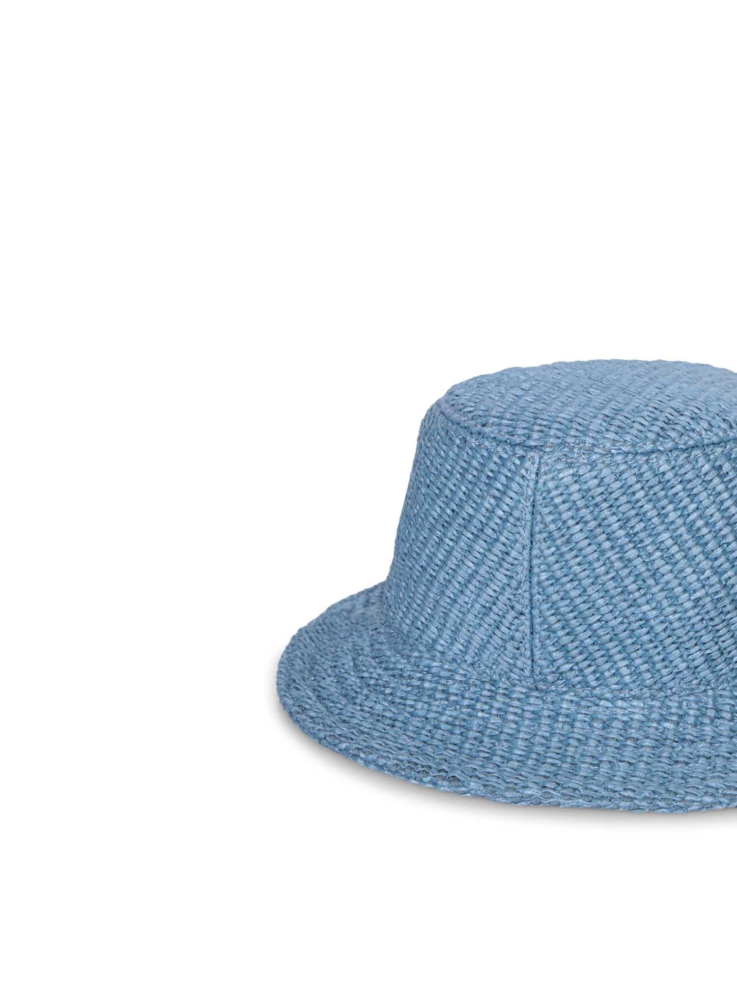 Raffia bucket hat. Contrasting Givenchy logo on the front. Light blue color.