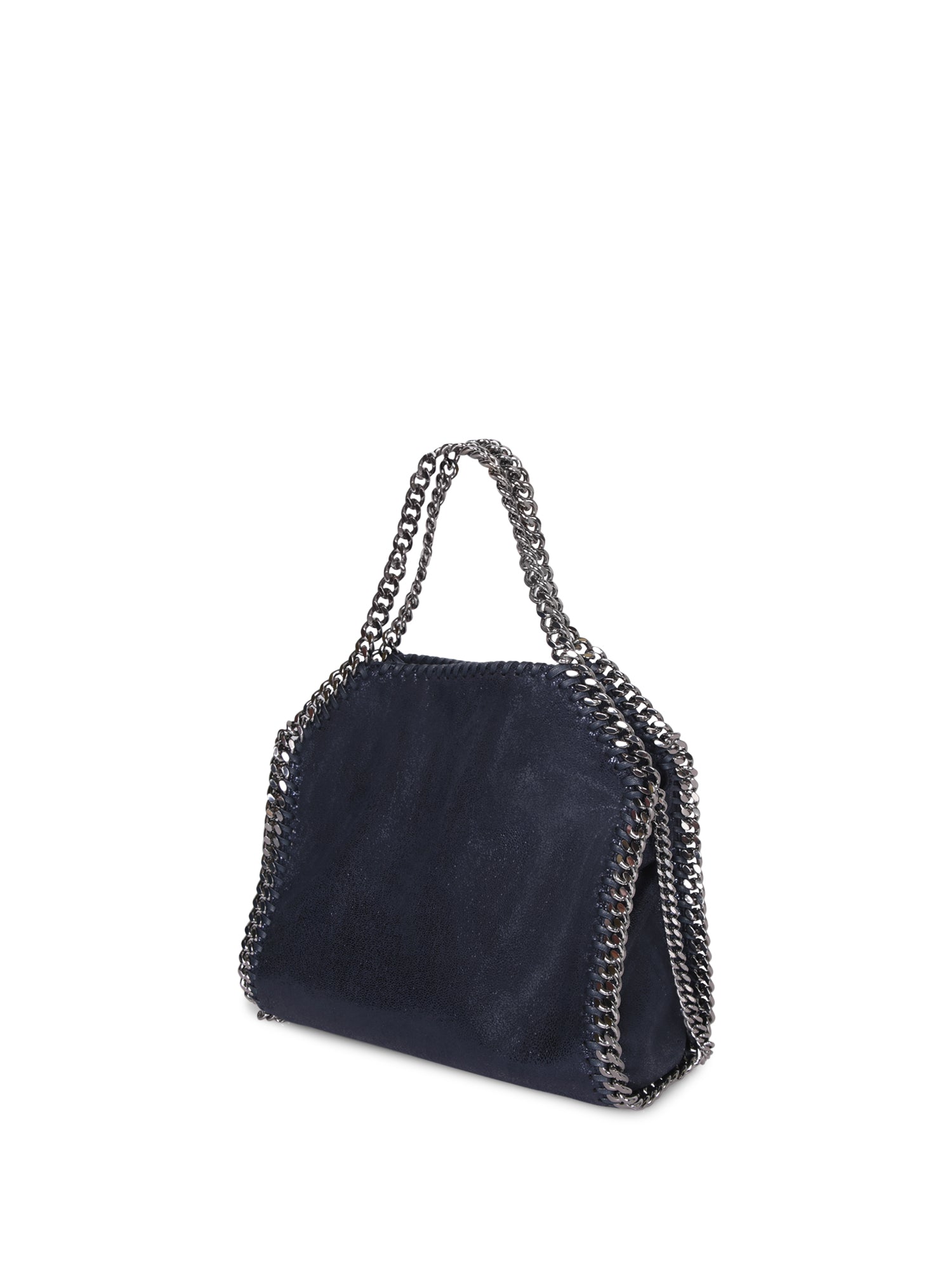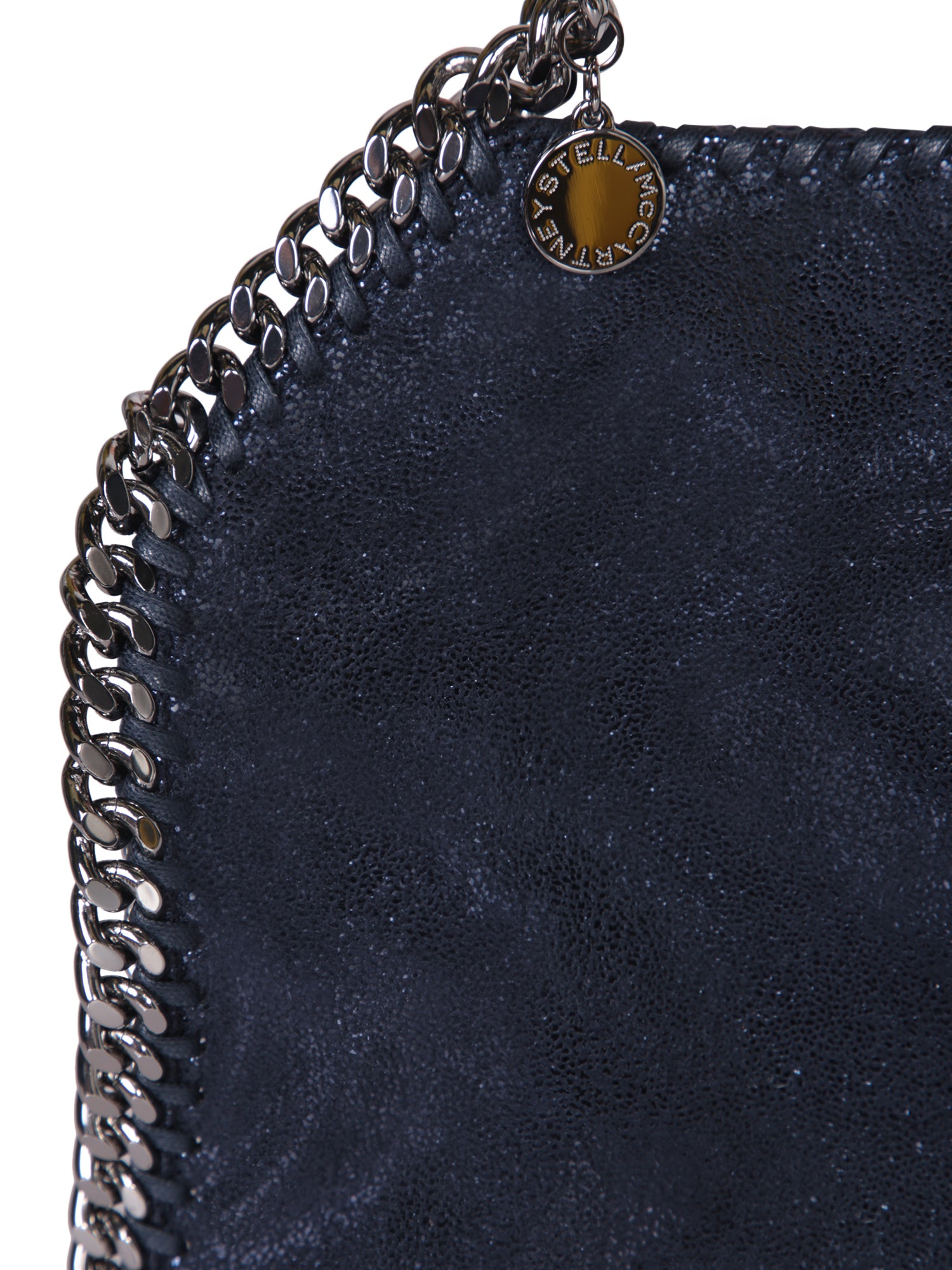 Metallic fabric body. Silver chain edging and strap. Magnetic snap closure.