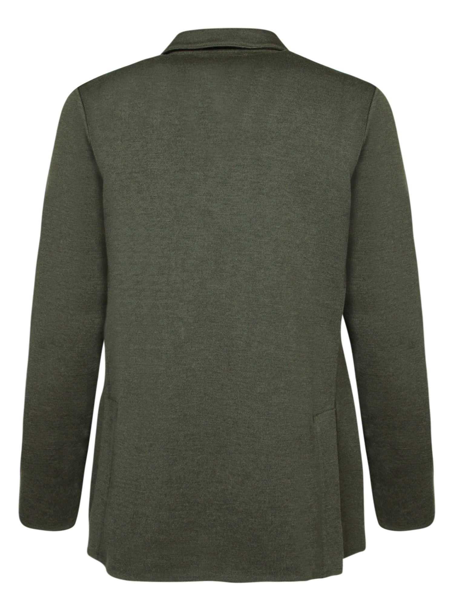 Double-breasted wool cardigan. Button closure. Welt front pockets.