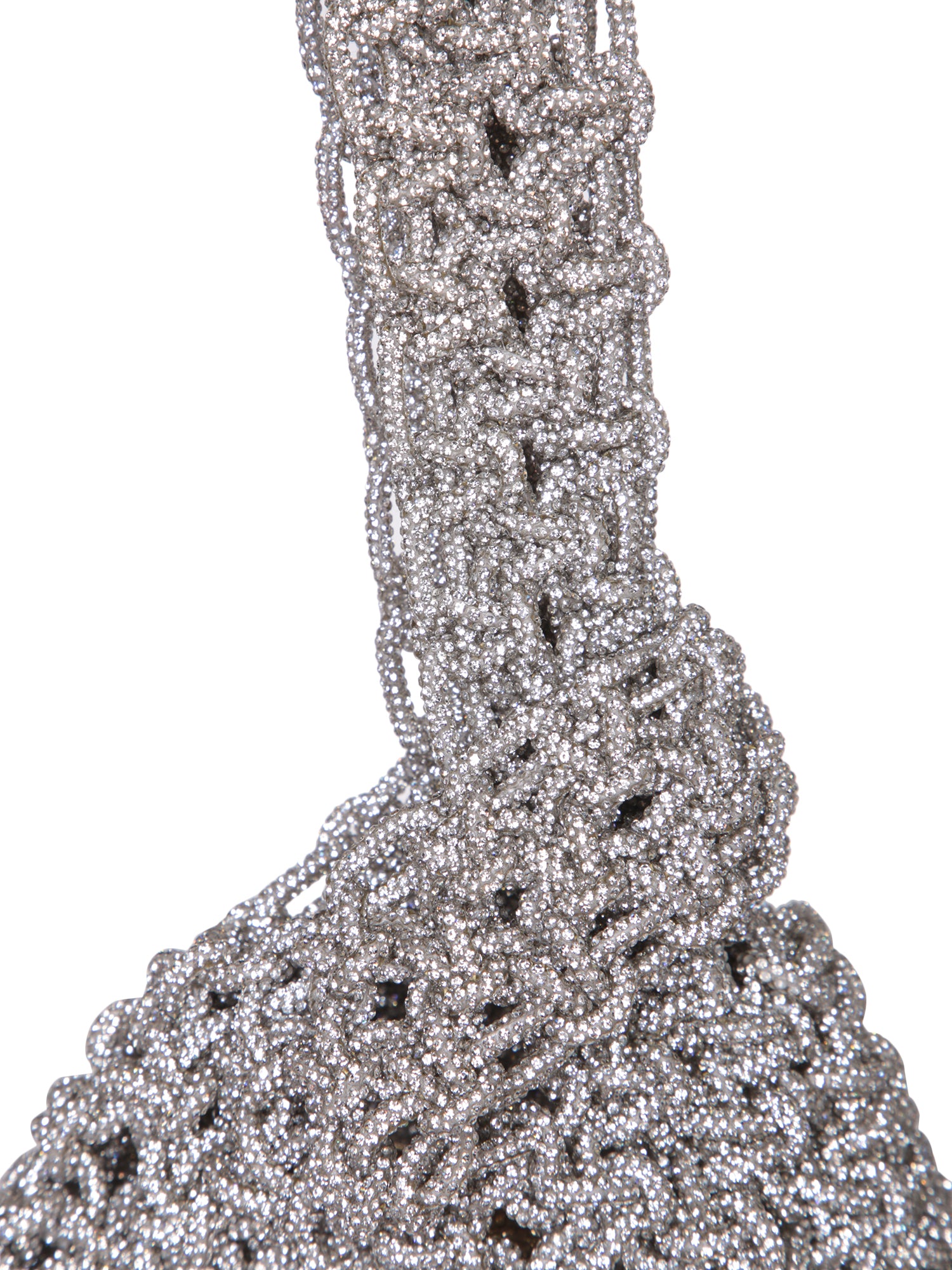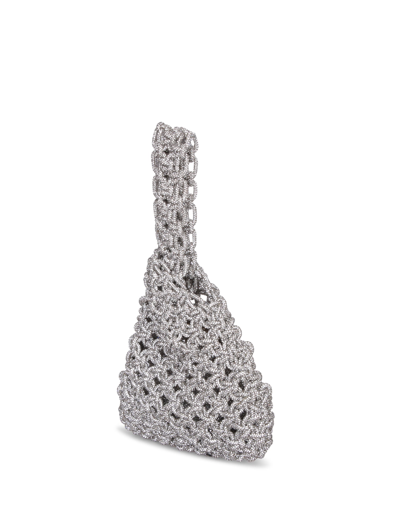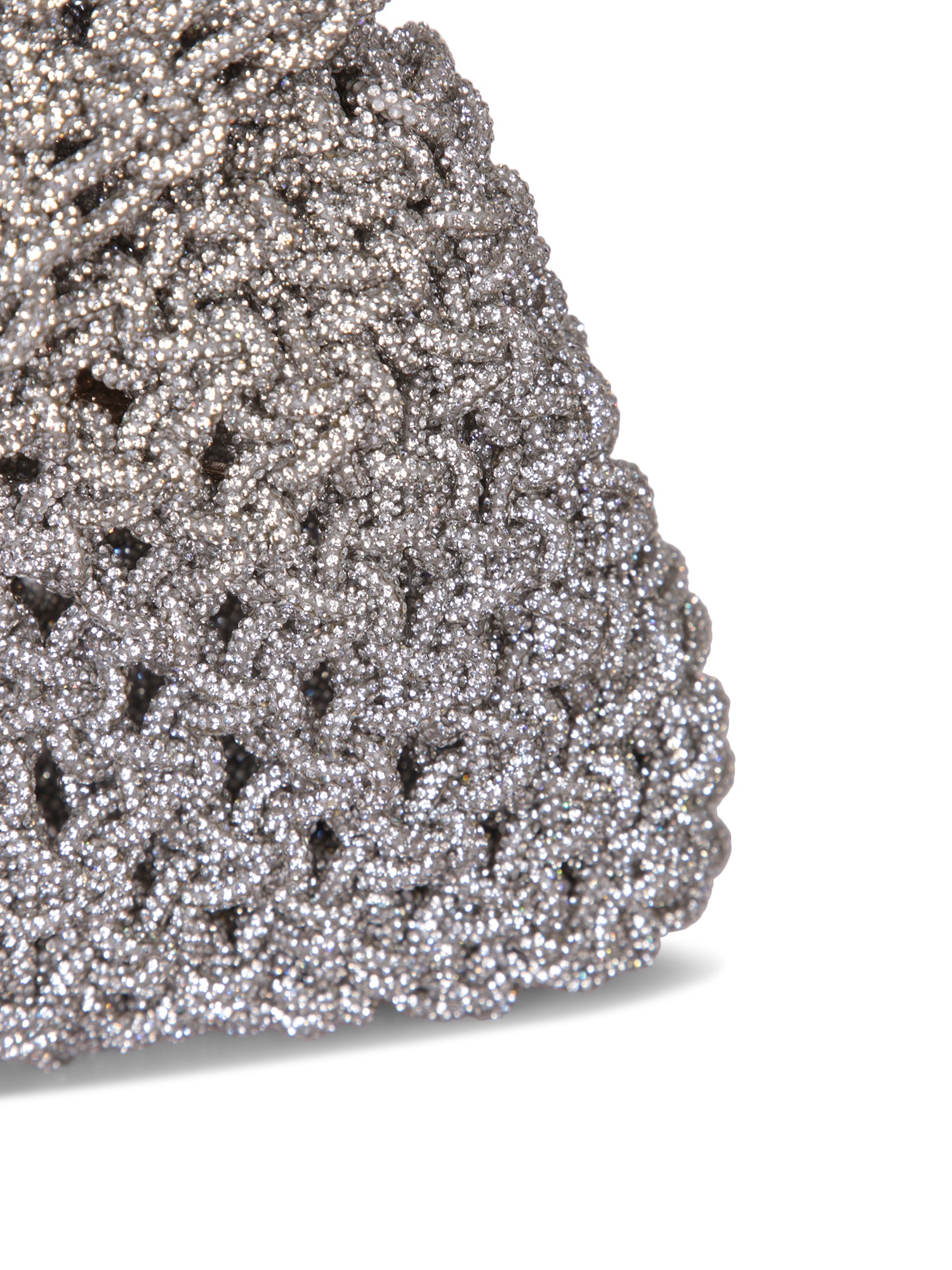 Crystal shoulder bag. Knitted mesh design. Magnetic closure.