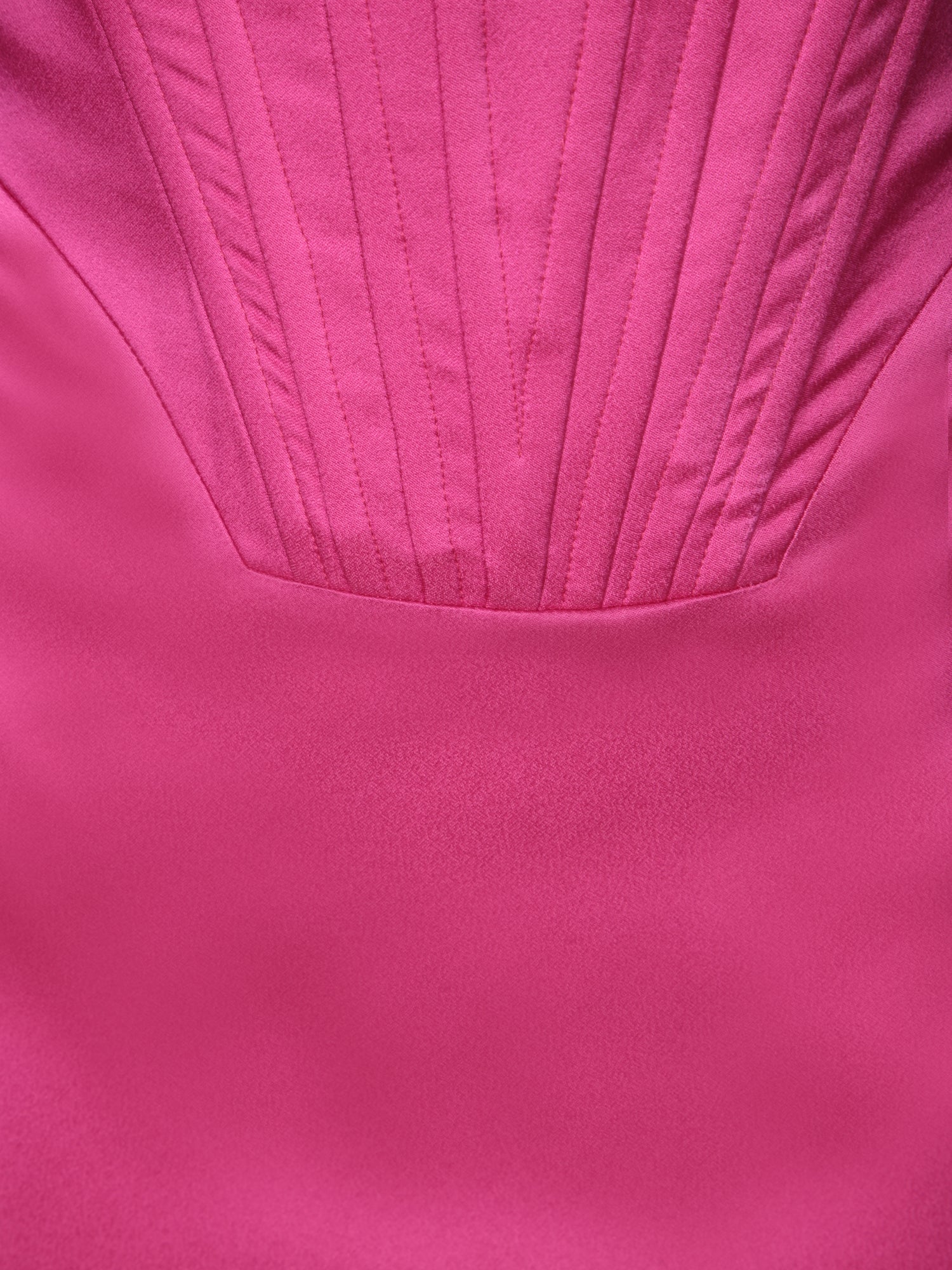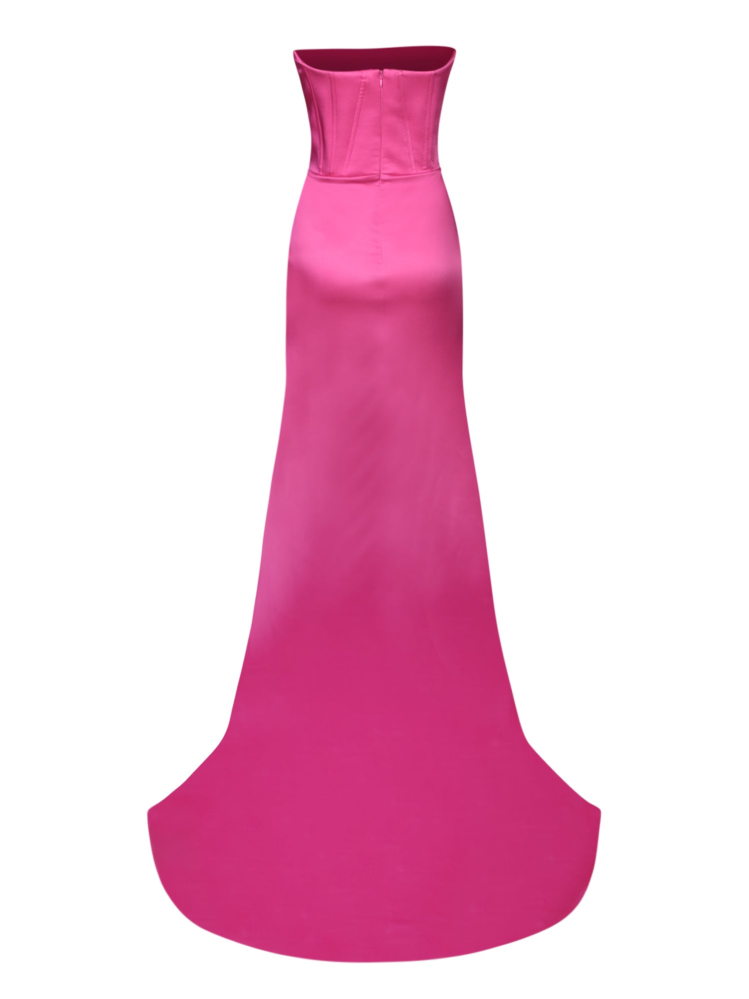 Long viscose dress, sweetheart neckline, reinforced seams, concealed back closure.