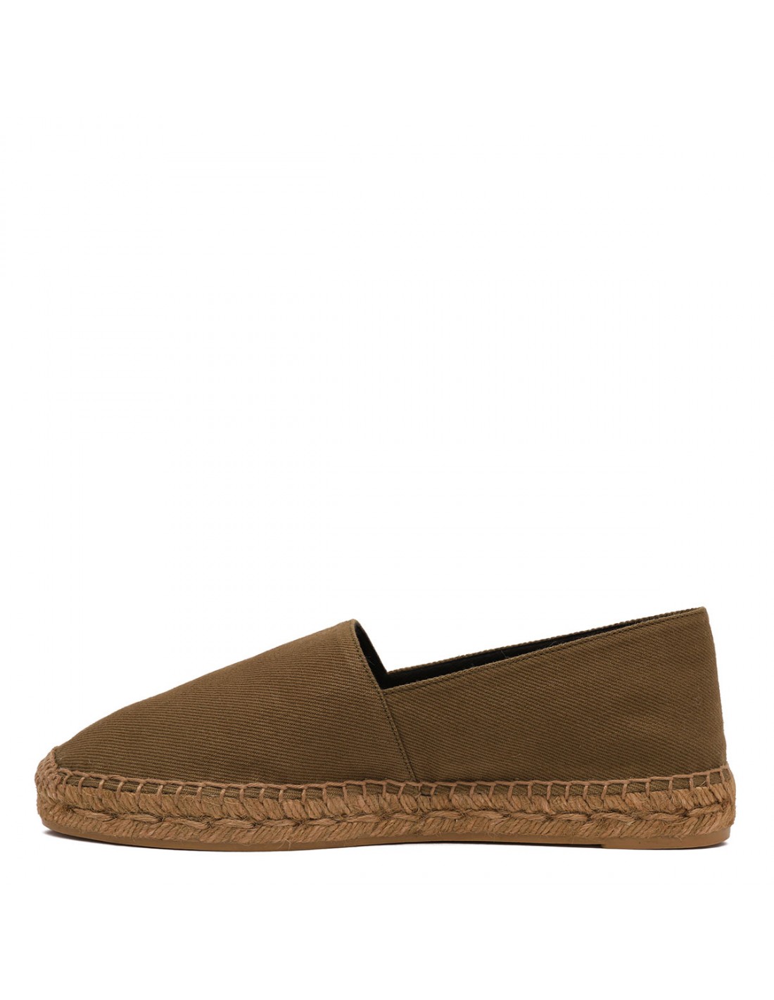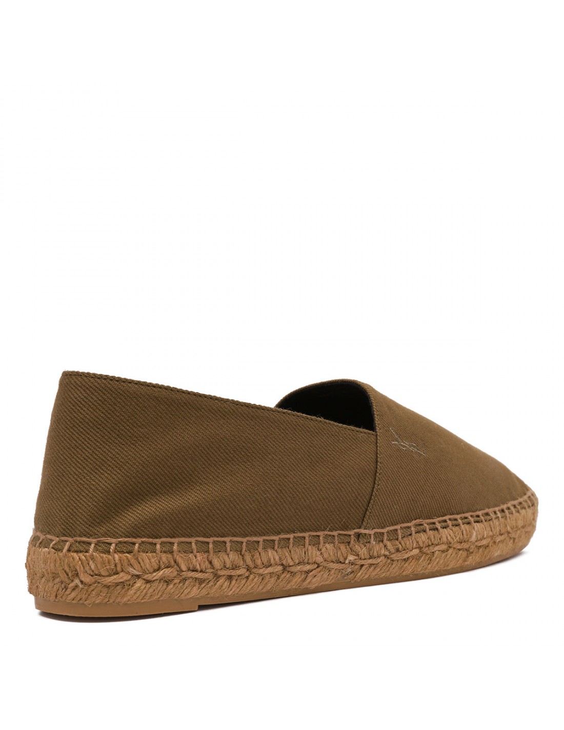 Cactus hue cotton gabardine espadrilles from Saint Laurent featuring Cassandre embroidery on the side, contrasting stitching, rope midsole and rubber sole.