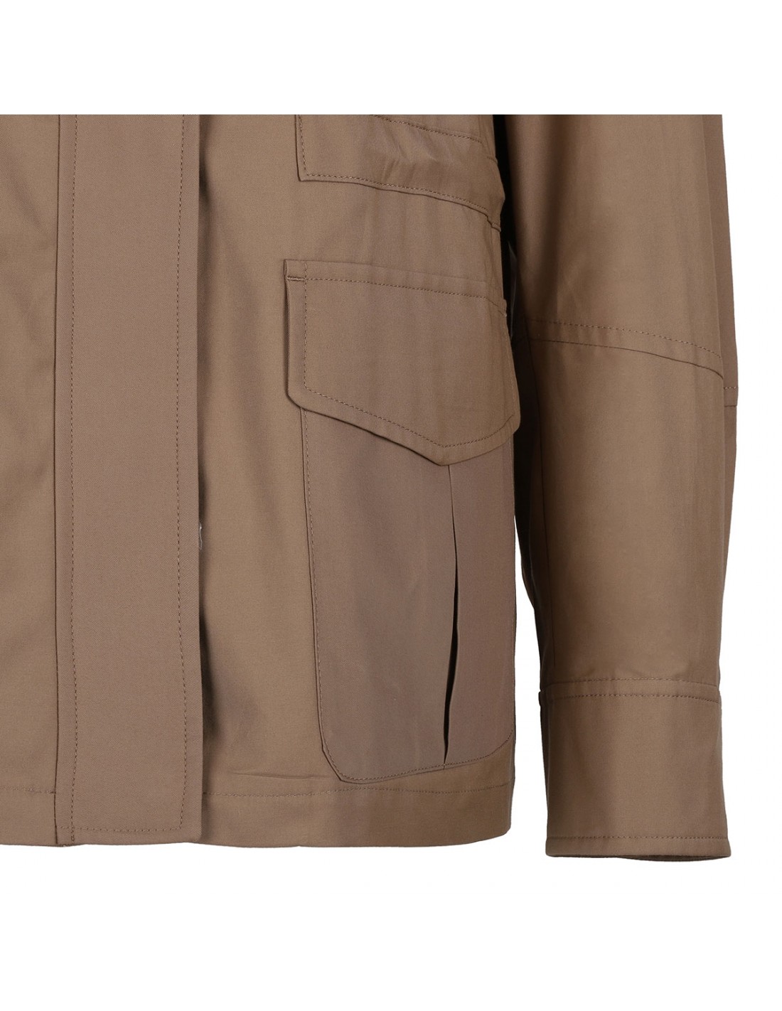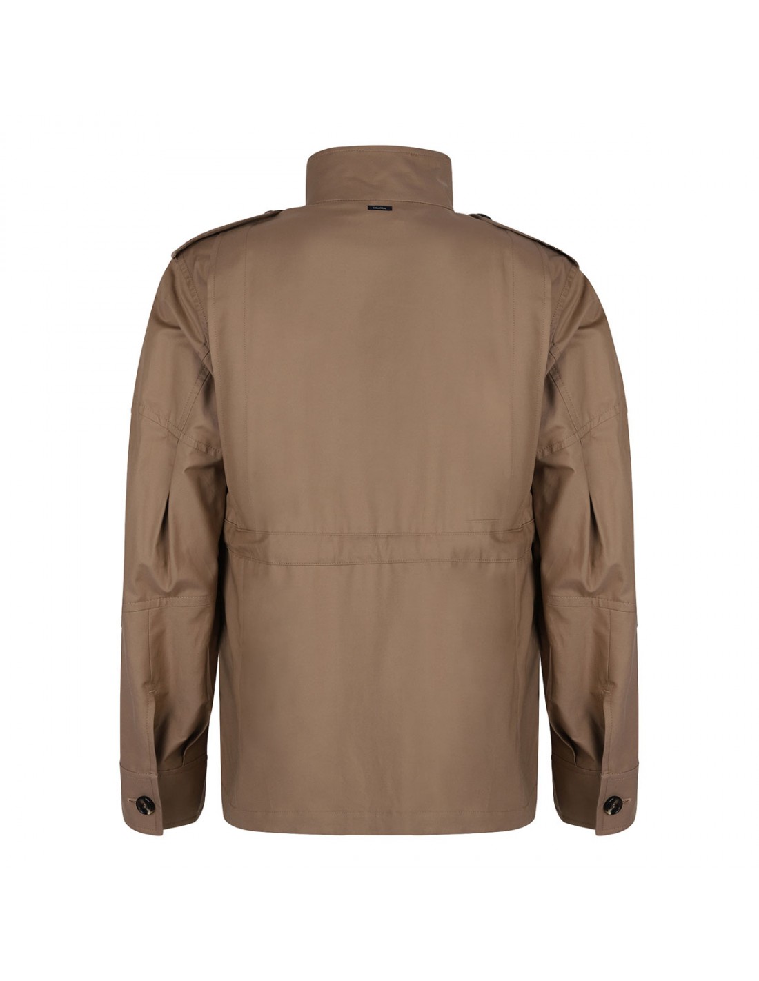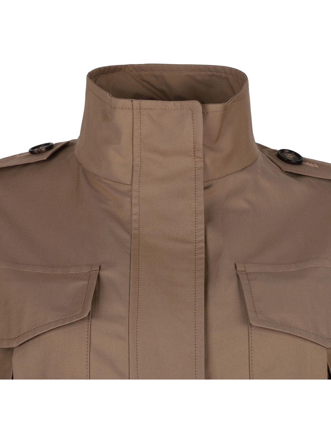 Camel hue cotton twill Leila utility jacket from 'S Max Mara featuring concealed drawstring at waist, stand collar, shoulder epaulettes, four flap pockets, concealed snap and zip fastening, buttoned cuffs.