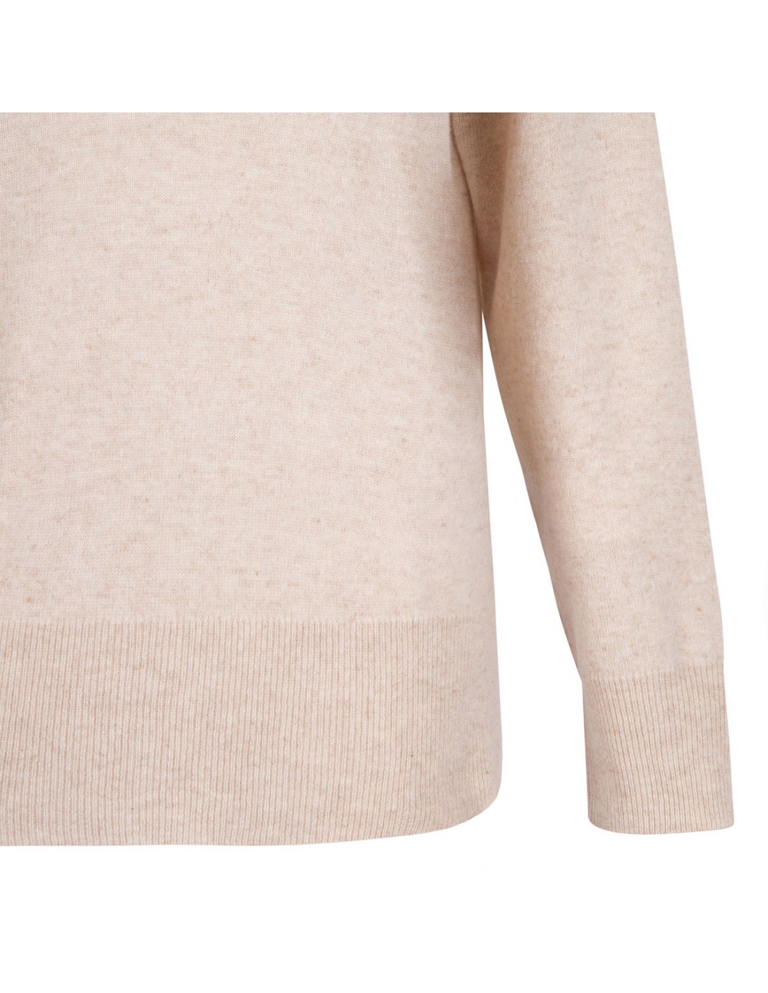 Beige cashmere Romeo polo sweater from Le Noir featuring polo collar with V-neck, long sleeves, ribbed-knit edges.