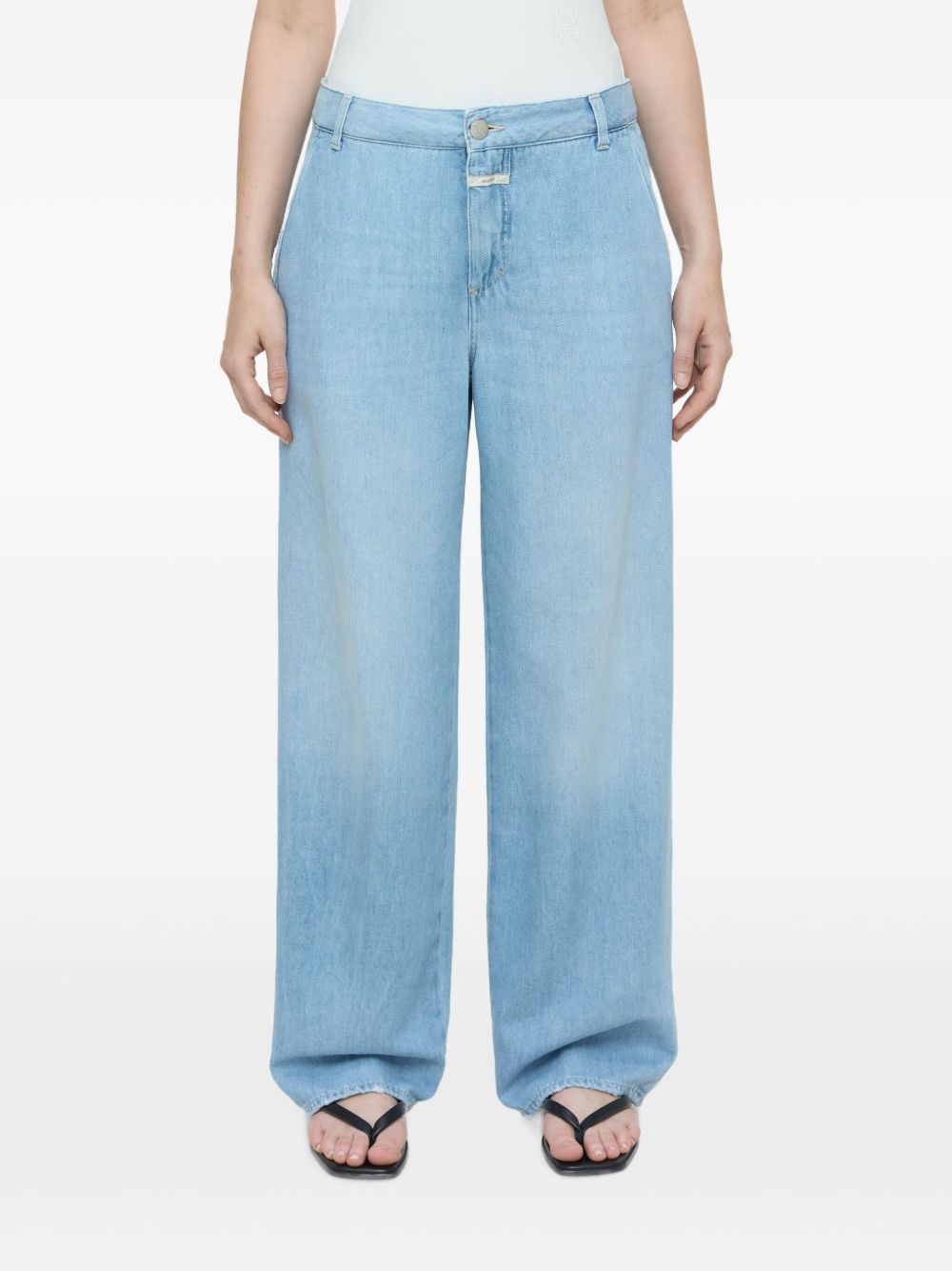 light blue front button and zip fastening belt loops two side slash pockets two rear button-fastening jetted pockets