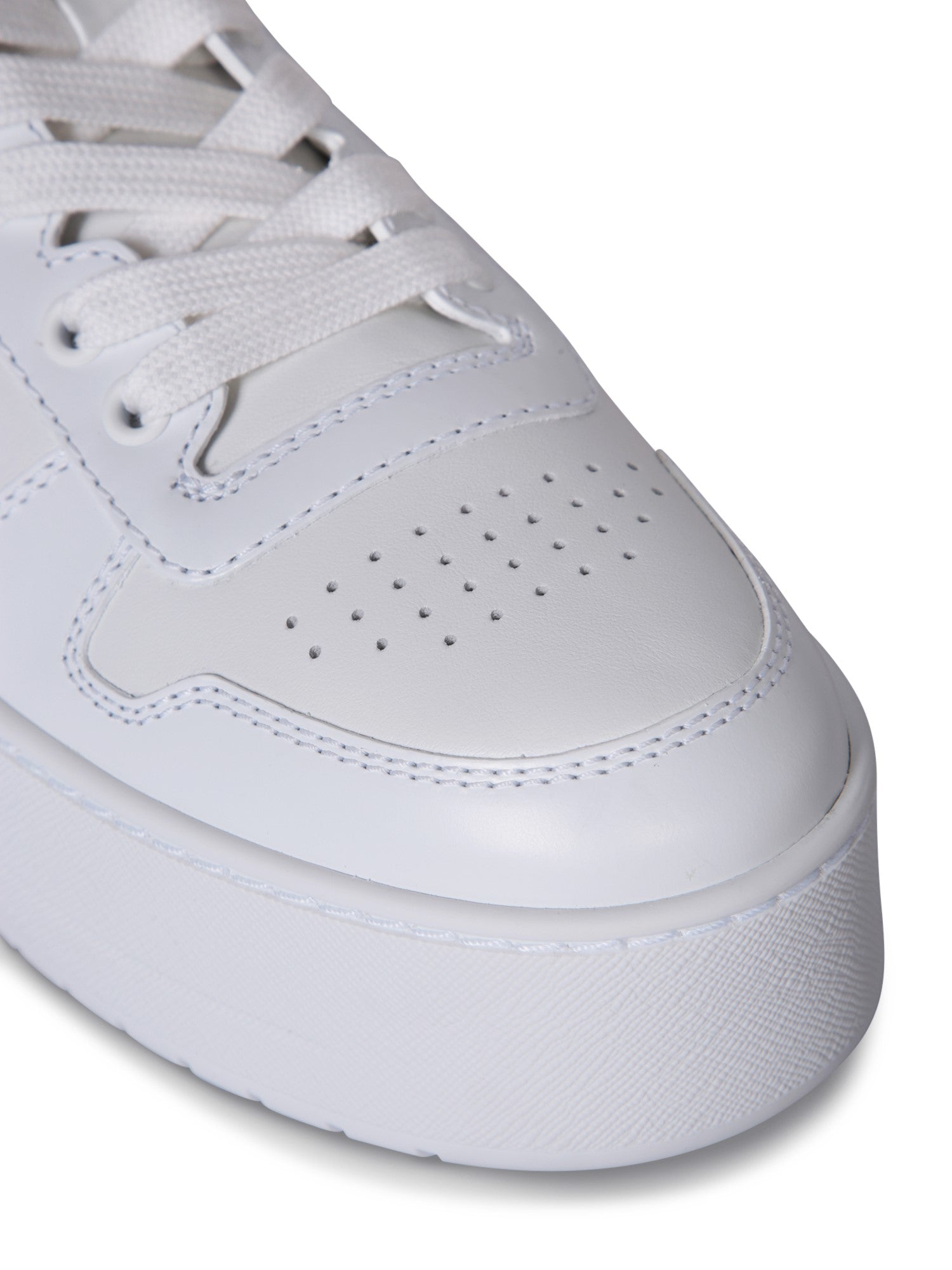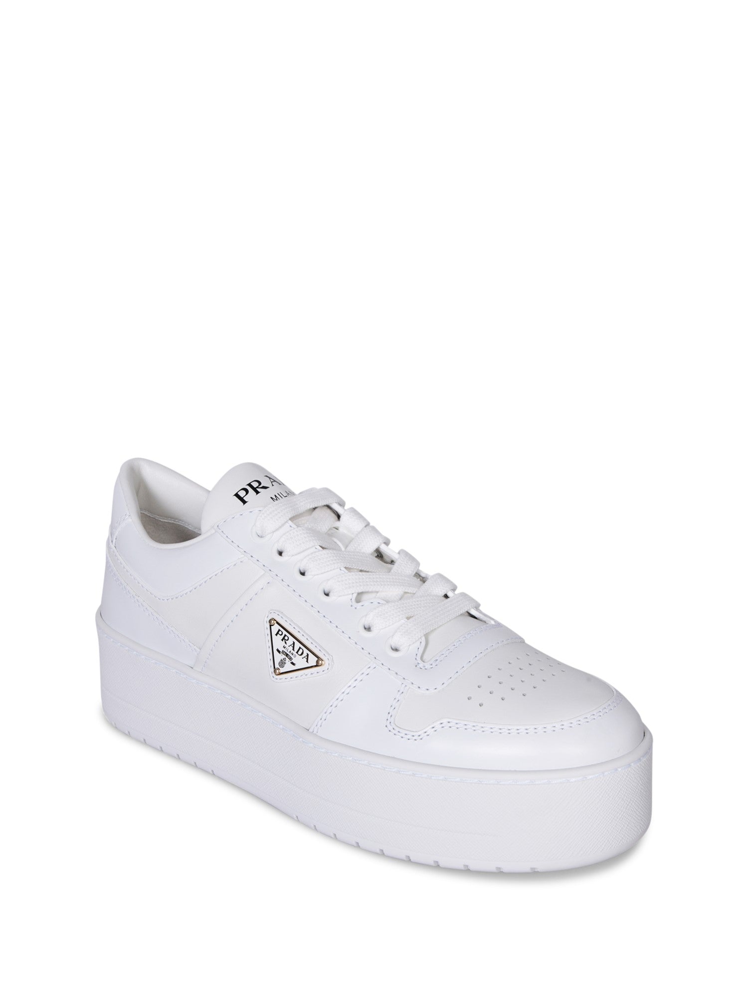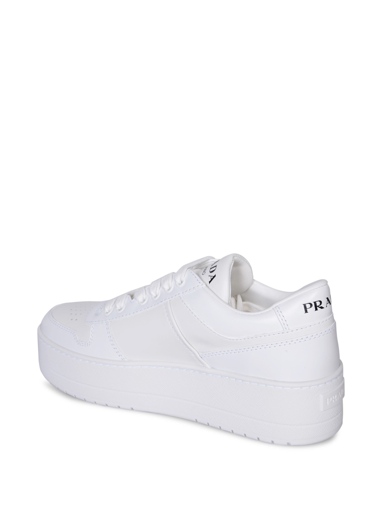 Leather sneakers with platform sole. Contrast Prada logo on the back. Lace-up closure.