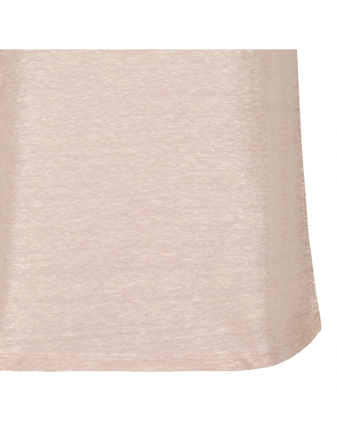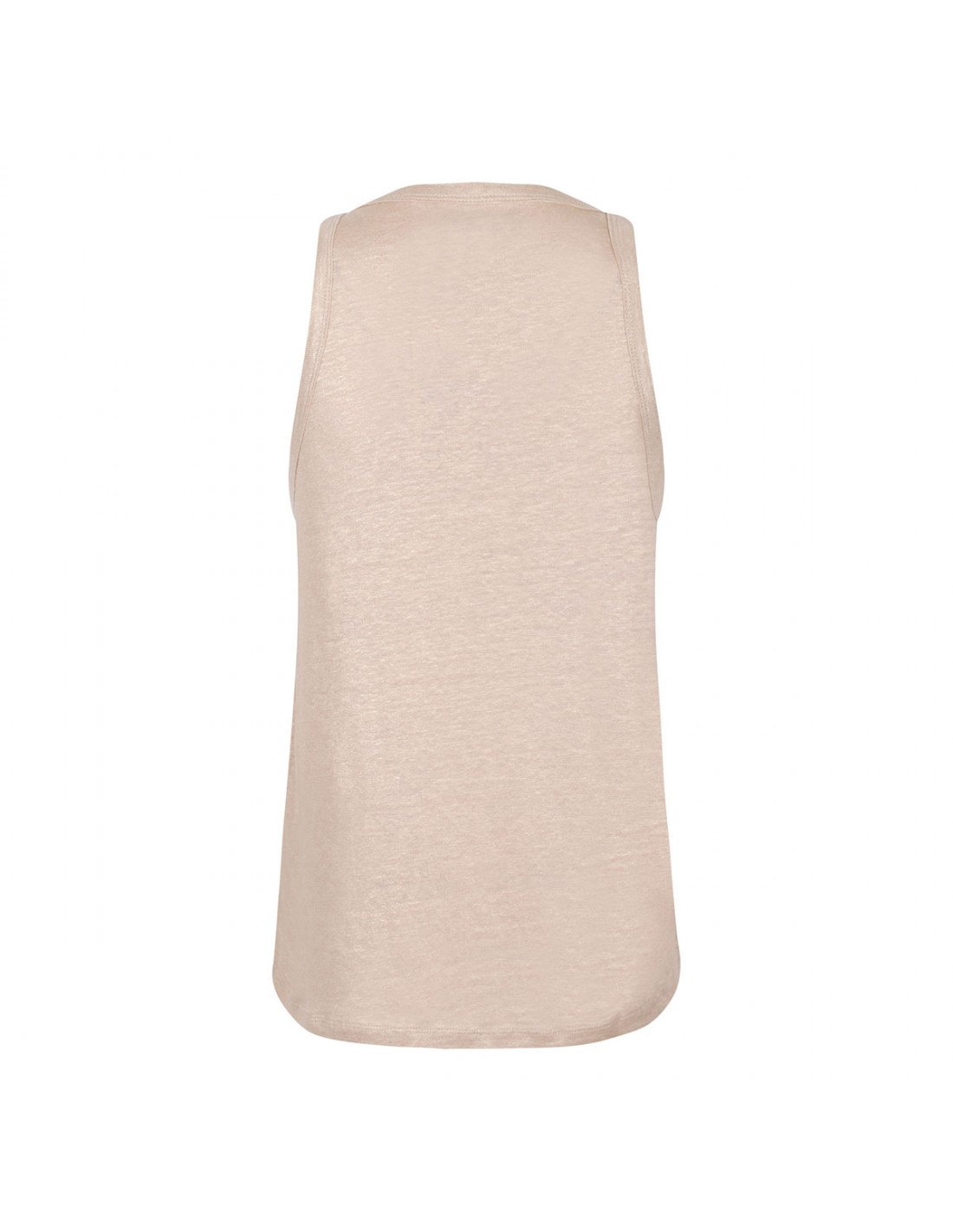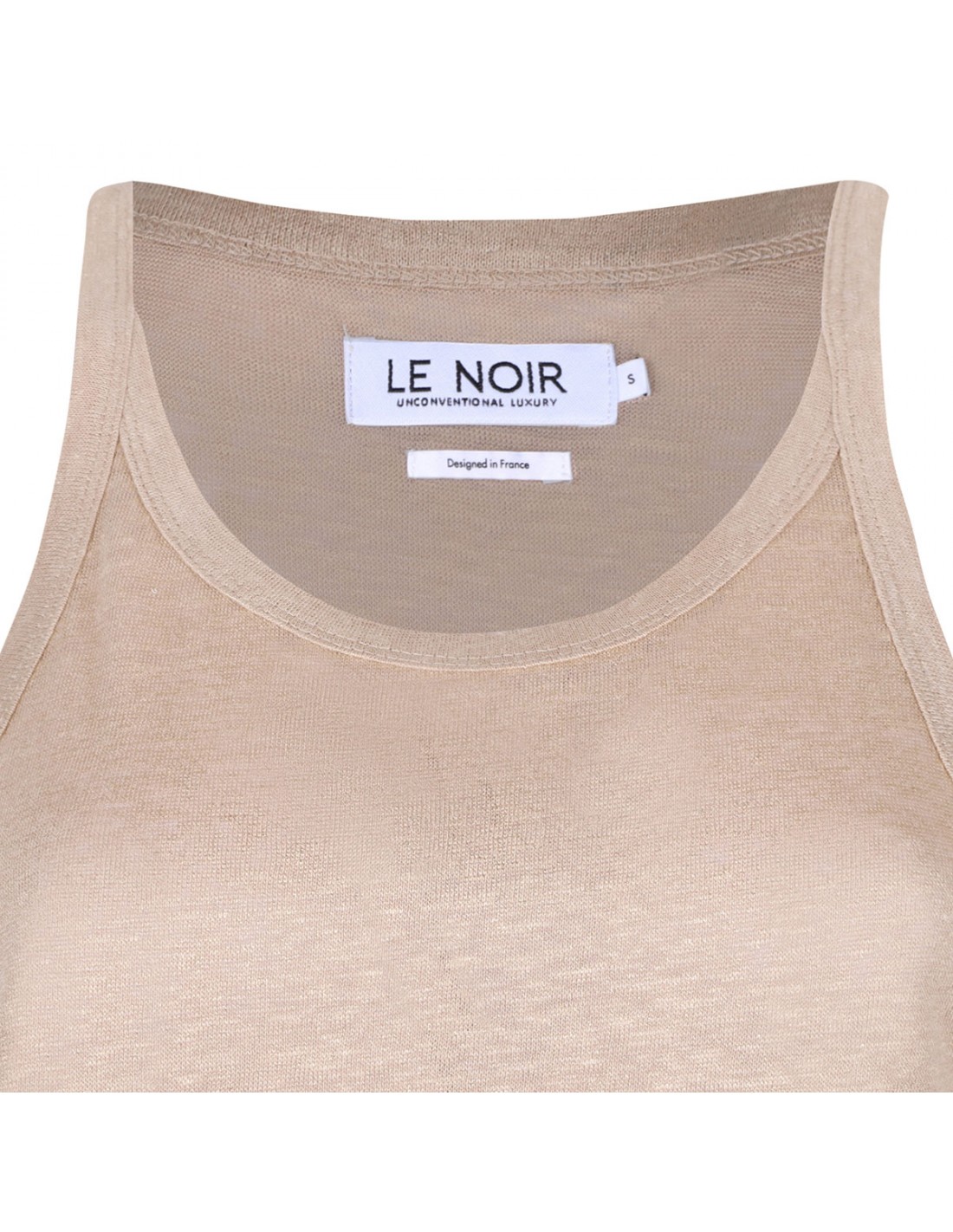 Ginger gold hue linen Mattea tank top from Le Noir featuring U-neck, sleeveeless silhouette and rounded hem.