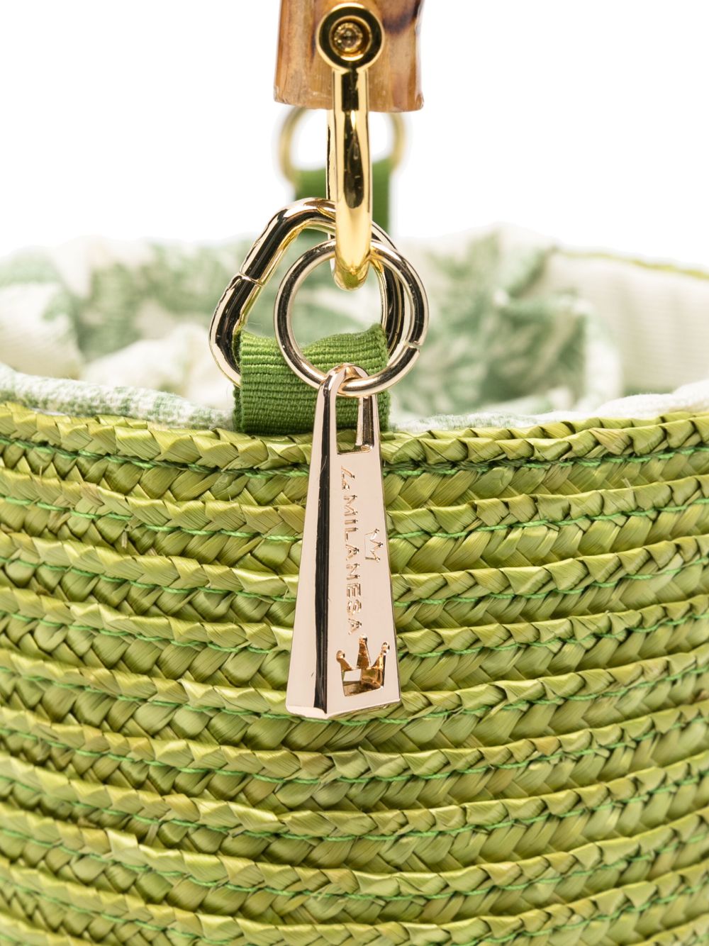 moss green top drawstring fastening single circular top handle floral applique This piece comes complete with a protective dust bag.