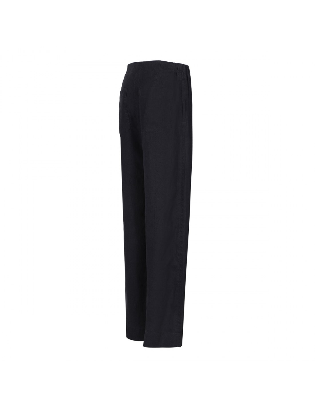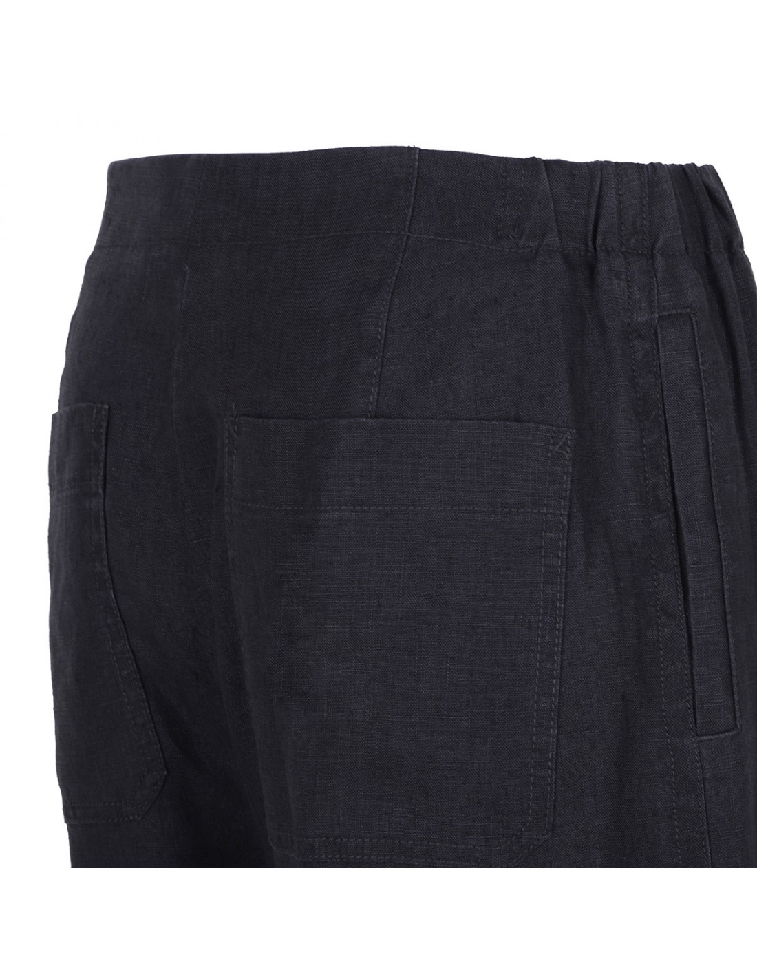Night lake hue hemp utility pants from Vince featuring low rise, relaxed silhouette, zip fly and button fastening, elastic waistband, side and patch back pockets.