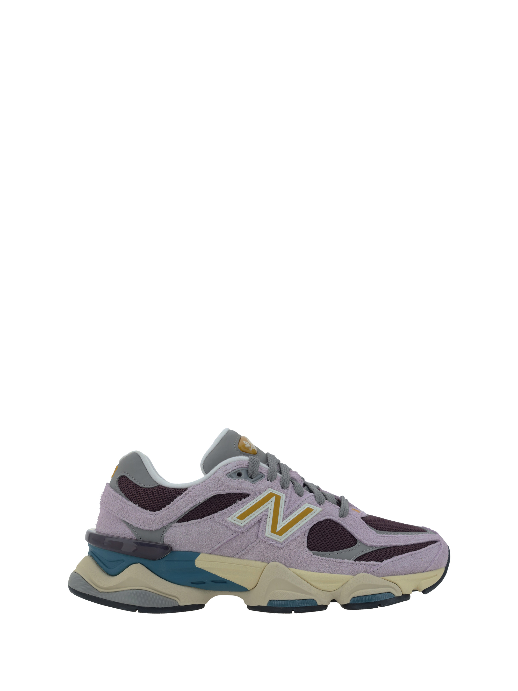 Sneakers 9060 by New Balance, mesh upper with suede leather detailing, lace-up front closure, extended toe on front, raised and reinforced rubber sole, iconic contrasting brand monogram on side panels, contrasting logoed front tab.