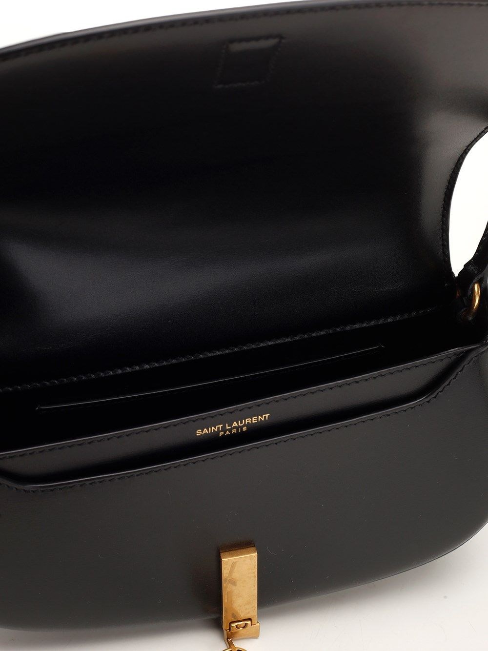 SKU B4104553 "Demi Lune" hobo bag from Saint Laurent, in black leather with a rigid structure and semi-glossy finish, with a flat pocket under the flap, antiqued gold metal closure and fixed shoulder strap. COD. 779642/0SX0W2760