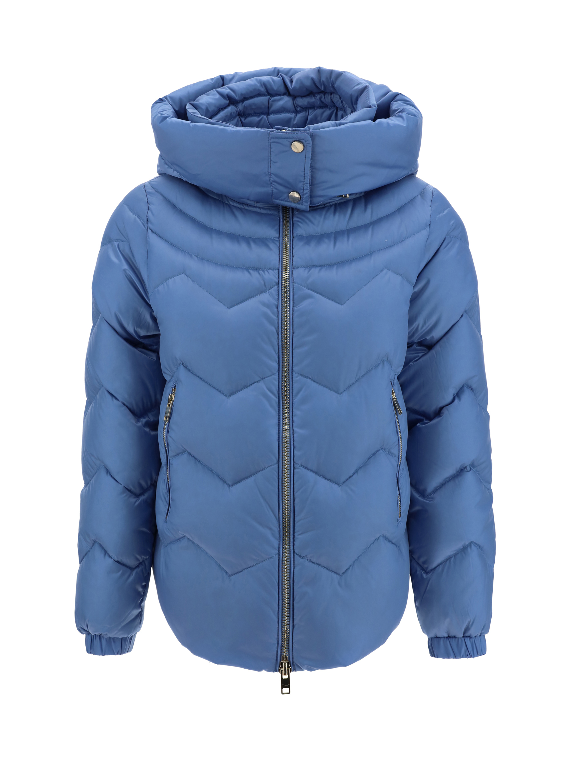 Down Jacket by Violanti, front zip closure with double slider, model with hood and high neck, two side welt pockets, quilted and padded all-over design, stretch cuffs, regular fit.