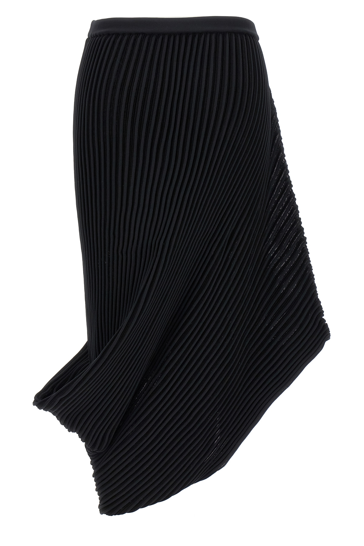Stream' knitted midi skirt with tightly woven cotton and polyester thread, curved silhouette forming an asymmetrical hem, garter stitch structure, elastic waistband. SUSTAINABLE: Product made with recycled materials.