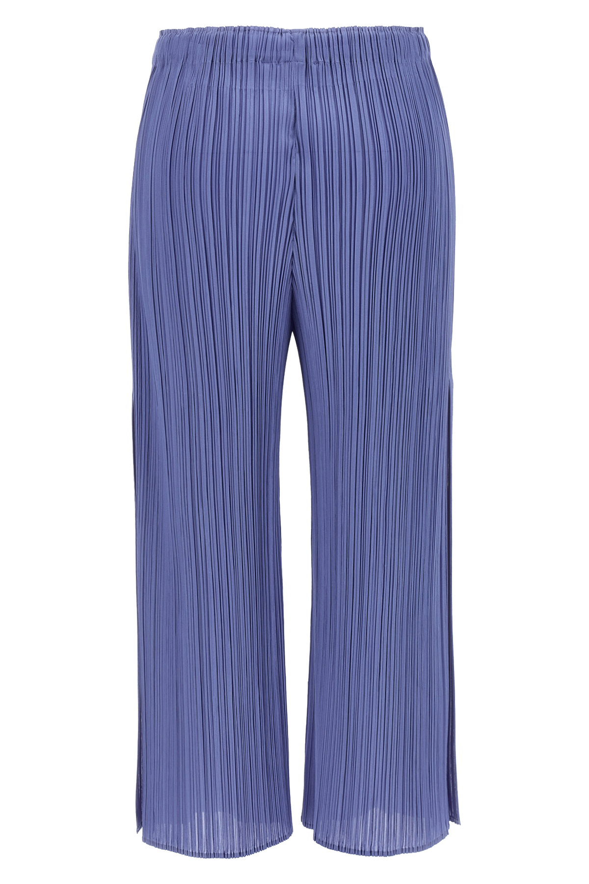 'Monthly Colors: March' pleated fabric pants, straight leg, elastic waistband, pockets, side slits at the bottom of the leg.