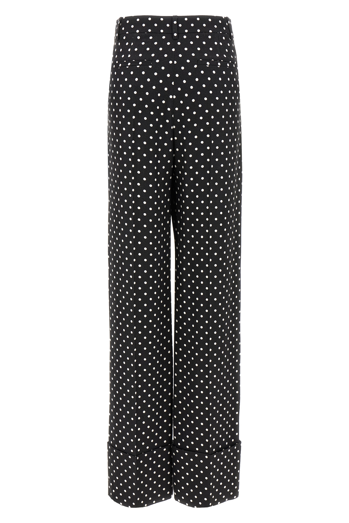 Plusdepolis Supergran print pants, wide leg, stretched pleat, hook and front button zip closure, pockets, maxi turn-up on the leg bottom.